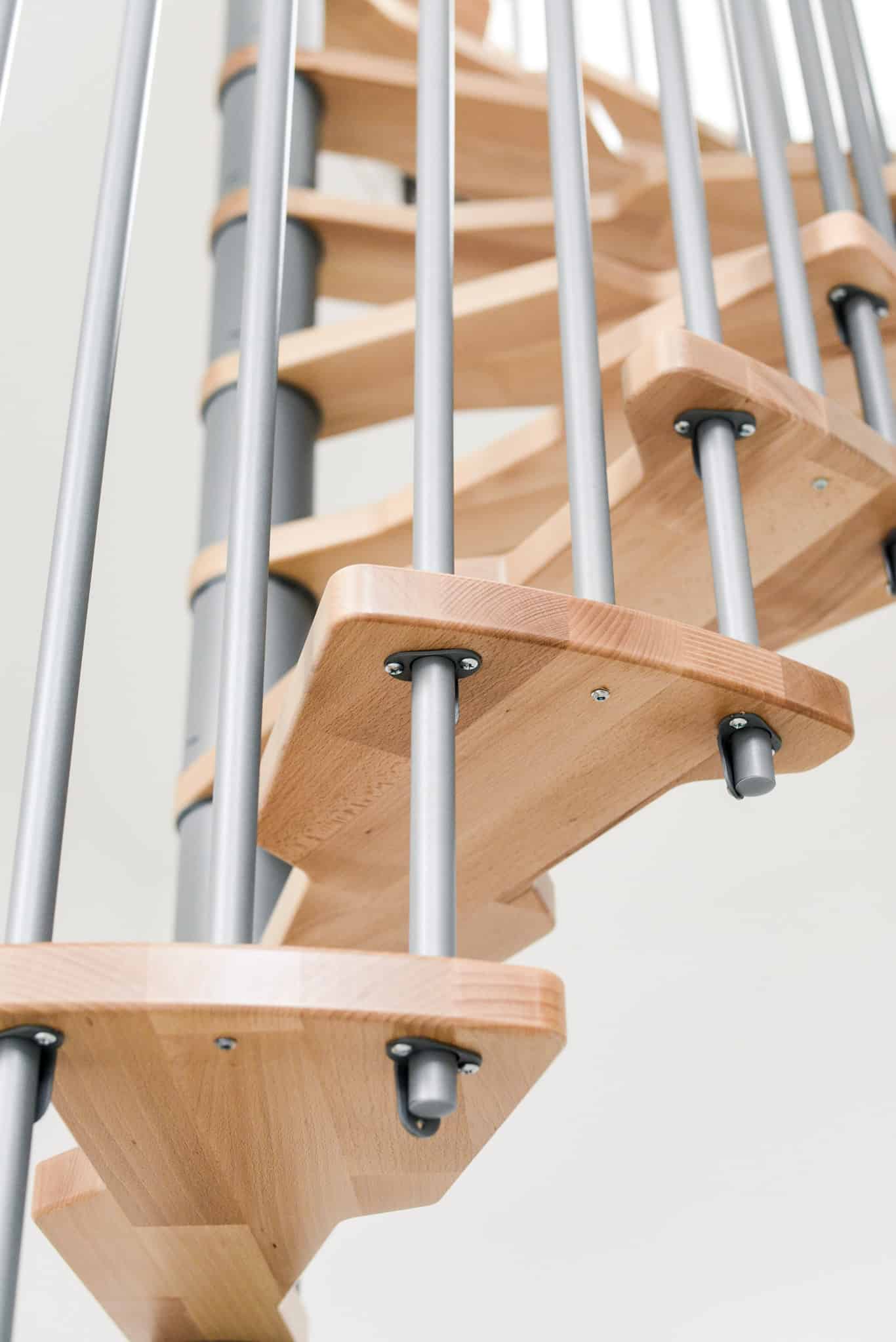 Metallica Smart má schůdky vyrobené z masivního bukového dřeva. Ty mají prohlubně vlevo a vpravo, což umožňuje obzvláště prostorově úsporný design. Kromě toho jsou pokryty vysoce kvalitním lakem, který chrání materiál a dodává mu mírný lesk. Vřeteno a svislé zábradlí jsou vyrobeny z oceli a jsou pokryty práškovým lakem v černé, šedé nebo bílé barvě. Zábradlí z PVC je k dispozici také v černé, šedé nebo bílé barvě.