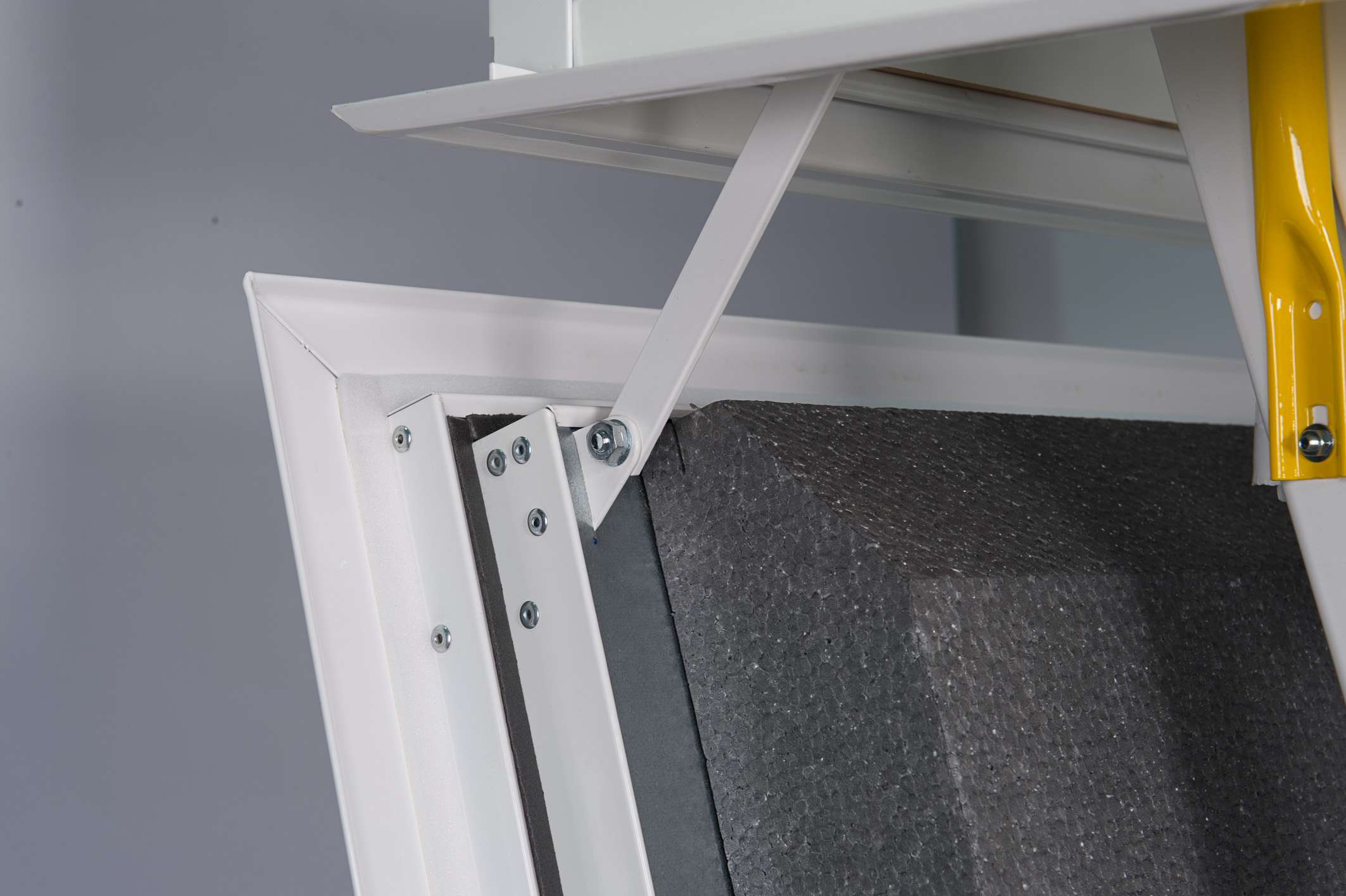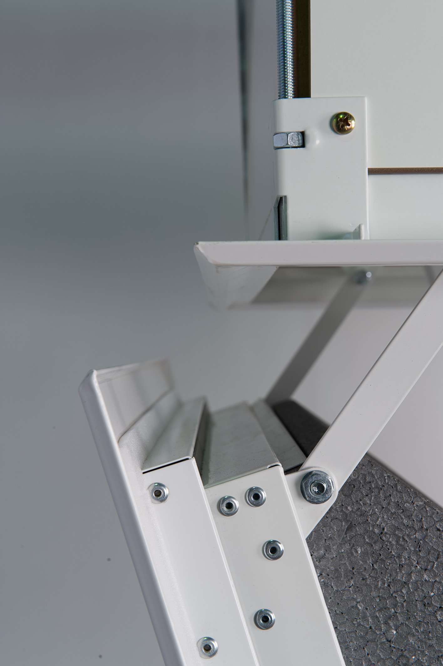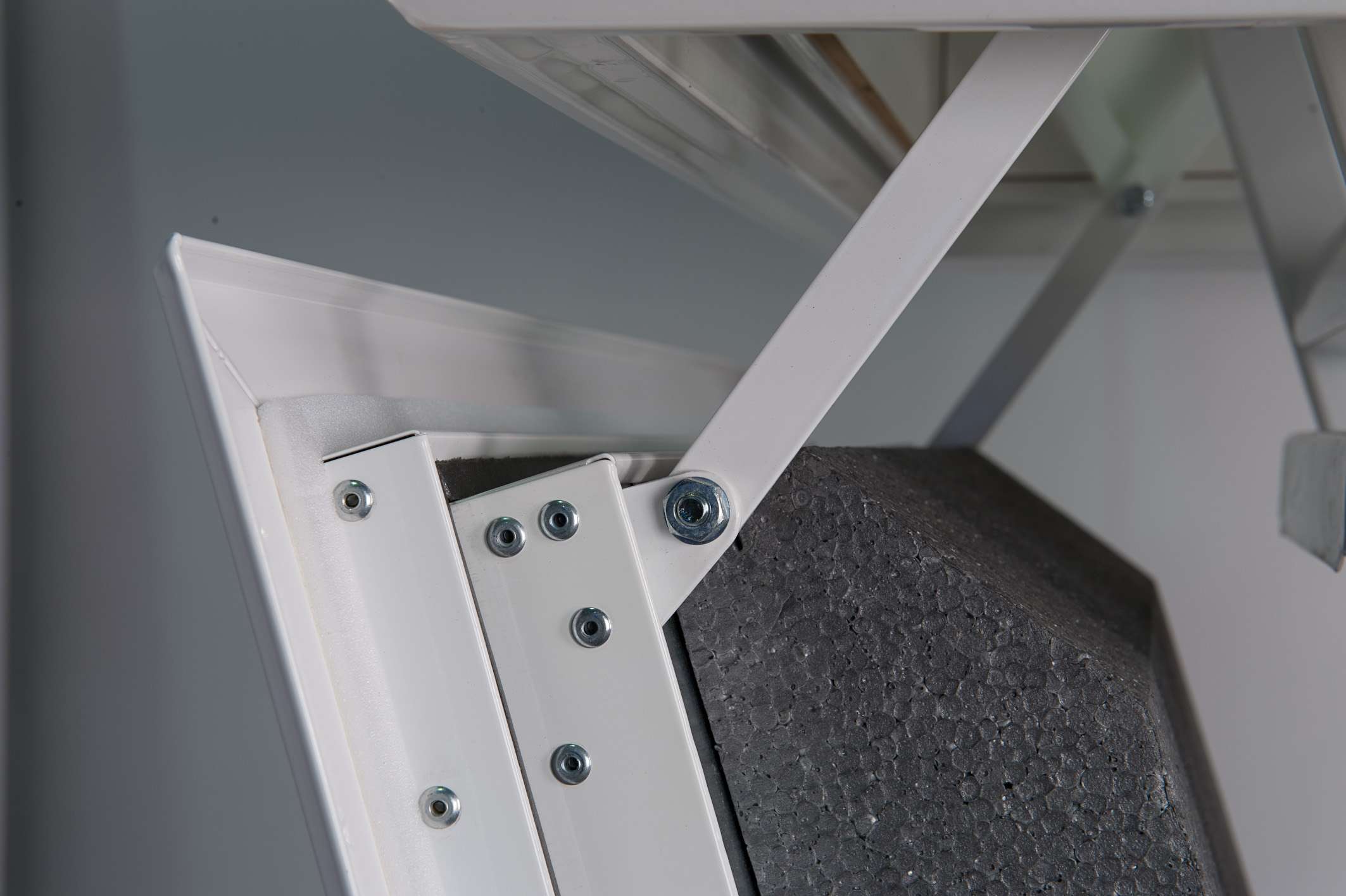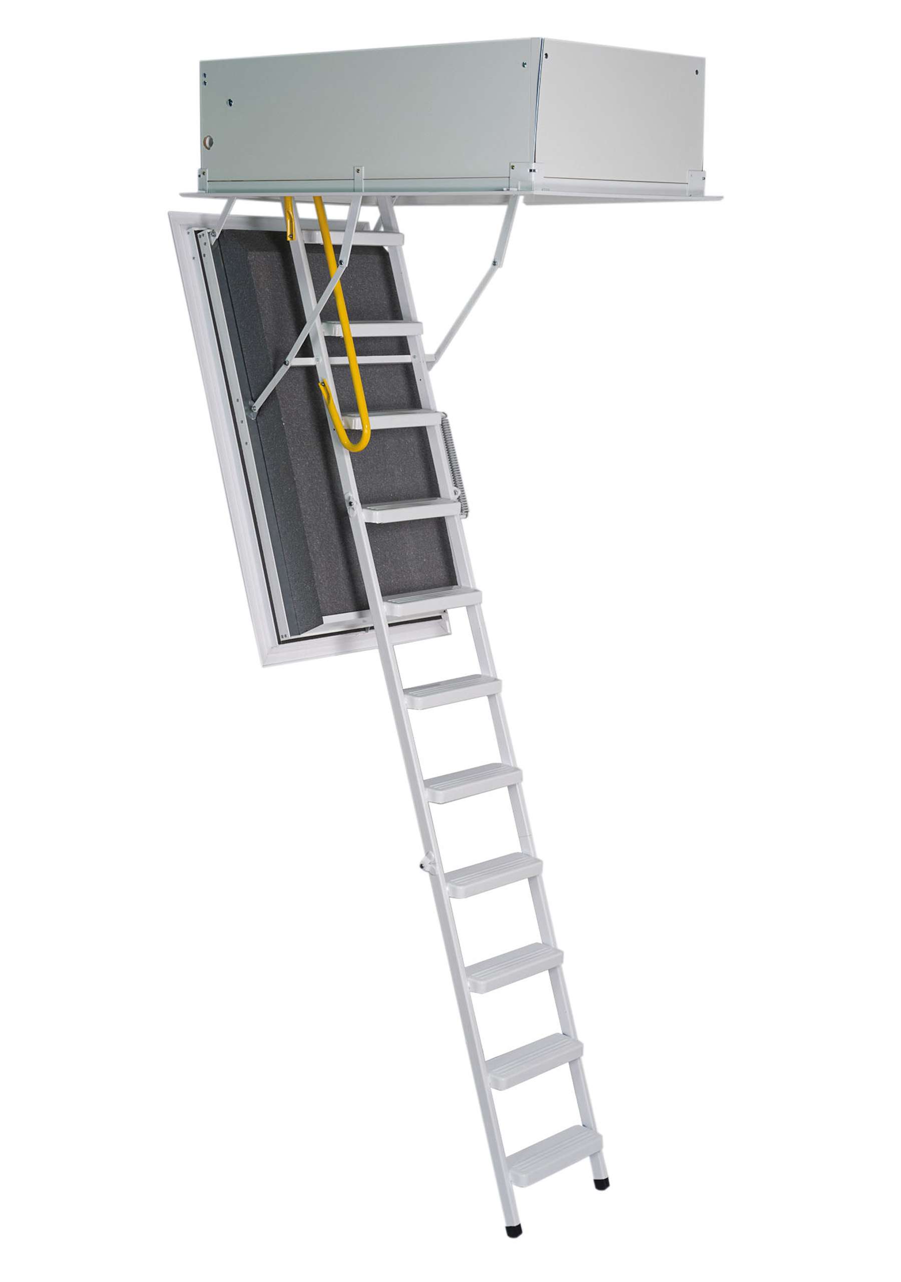 The Arctic Fire loft staircase is available in five different sizes, which means that it fits into ceiling openings with the following dimensions: 110×70 cm, 120×60 cm, 120×70 cm, 130×70 cm and 140×70 cm. Depending on the size, it is suitable for a room height of up to 300 cm, but can be shortened as needed. Thanks to the design lower lid, the Arctic Fire is also characterised by a seamless and particularly beautiful soffit. Like the stairs, this is kept in white, which makes the staircase look discreet but also elegant.