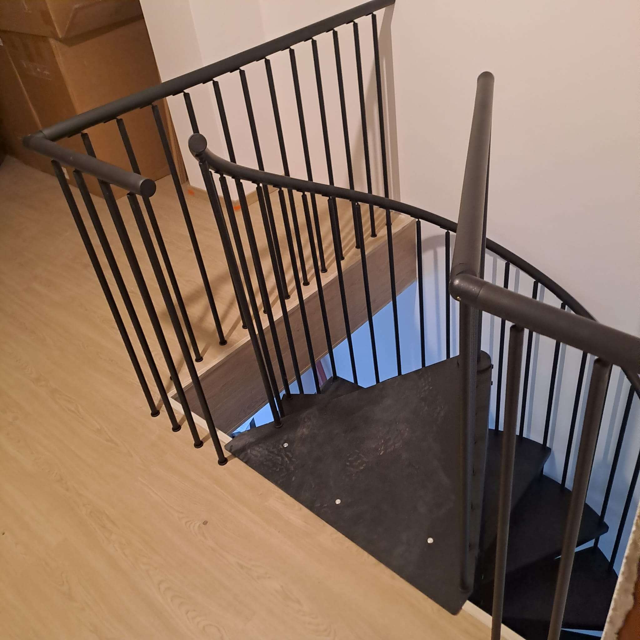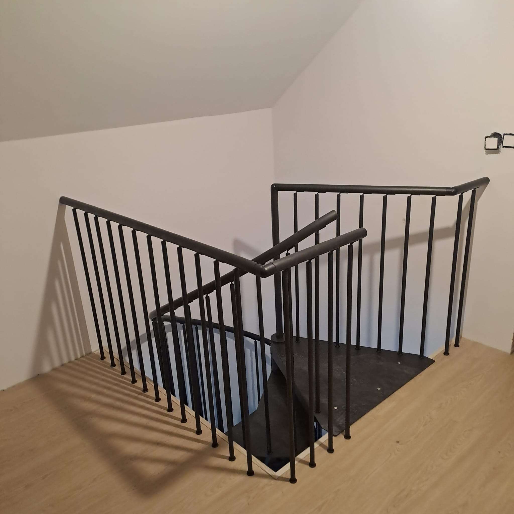 Piire on valmistatud metallvardadest, mida täiendavad tugevast nailonist ühendused. Käsipuu on valmistatud vormitavast plastikust ja kohandub paindlikult trepi joontega. Kõik piirdeosad on säilitatud samas värvitoonis, luues harmoonilise üldpildi.