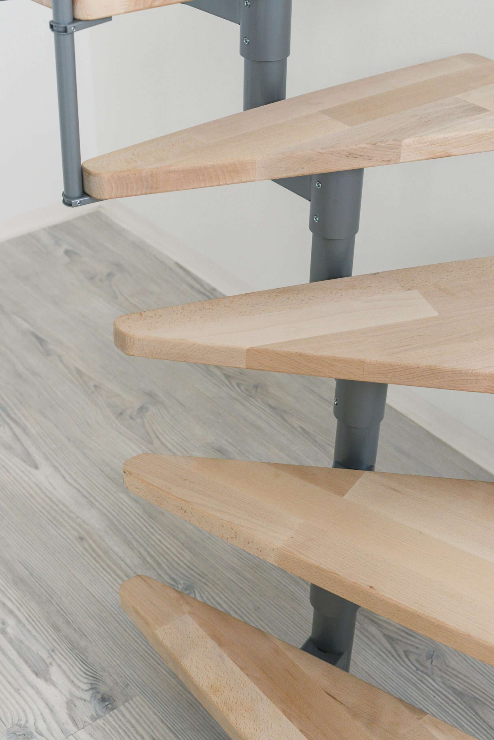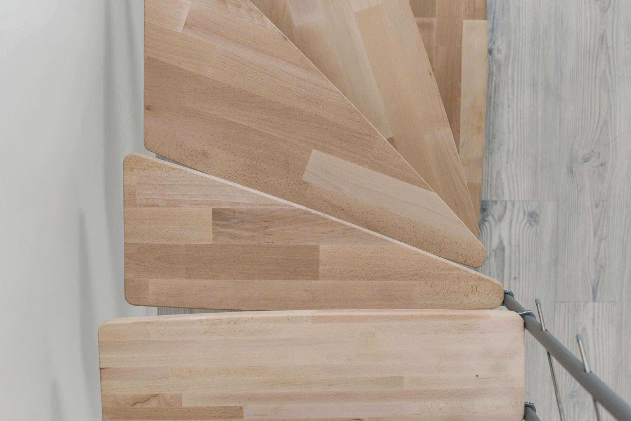 - Des marches en bois de hêtre dans un aspect naturel ou teintées en noyer plus foncé