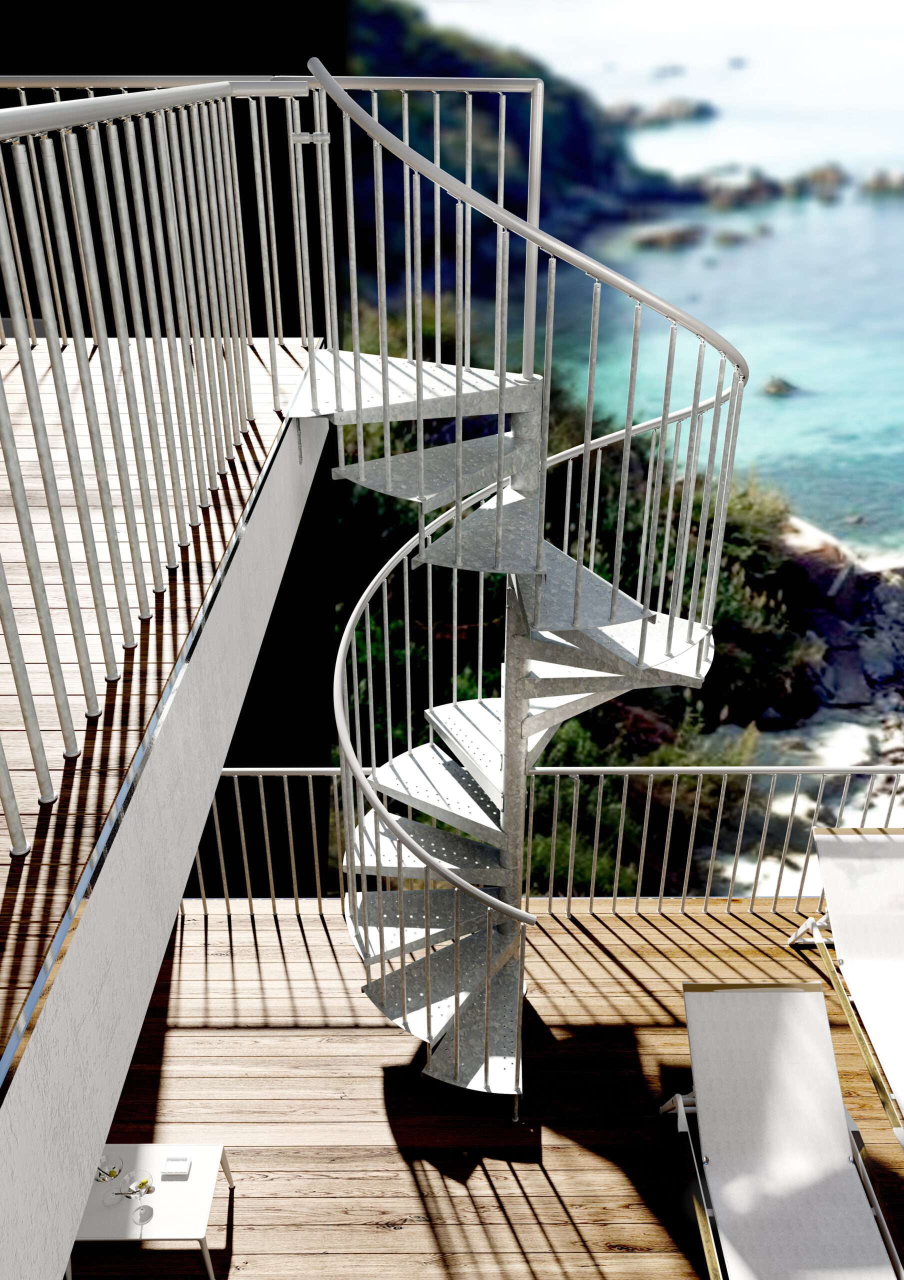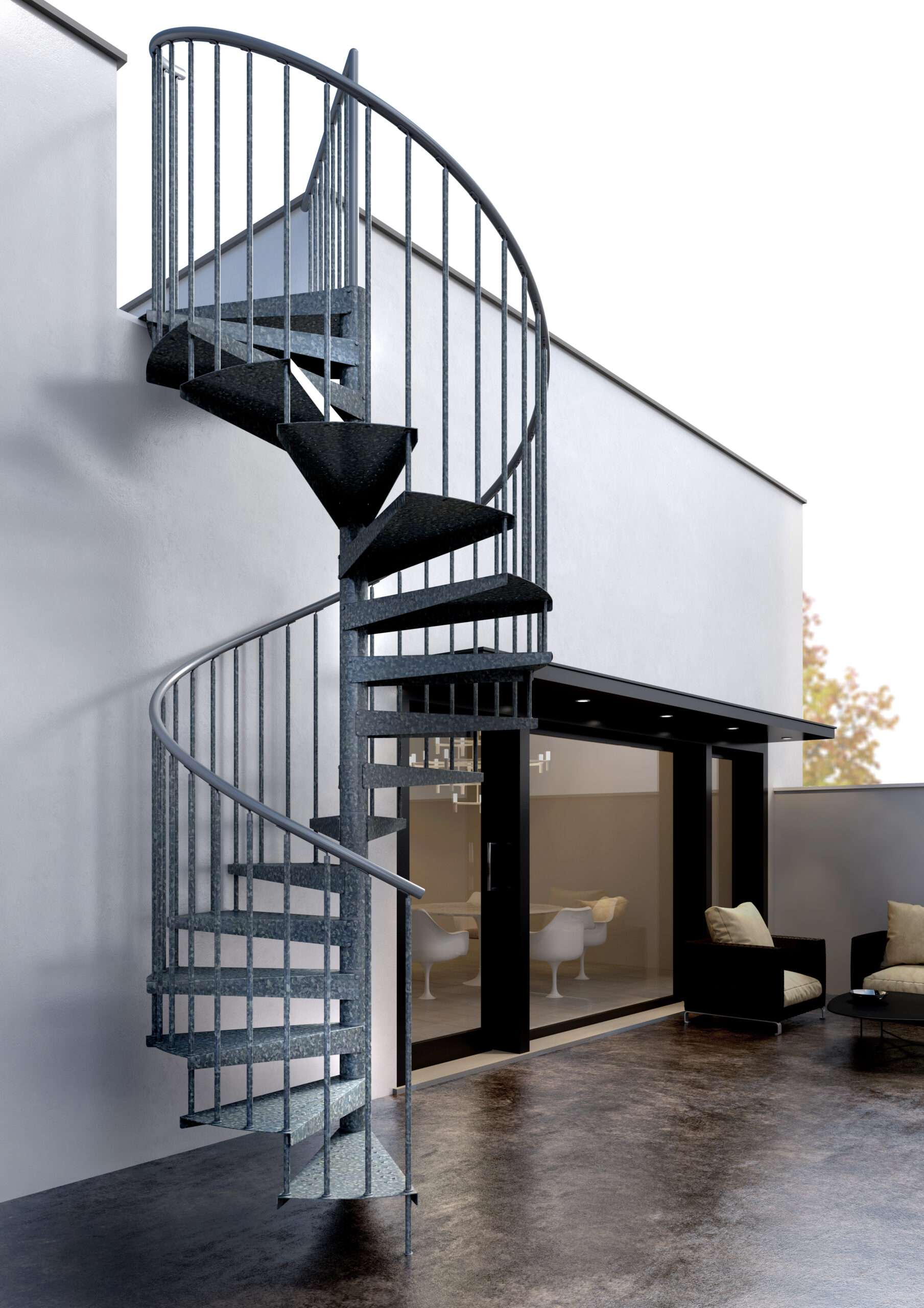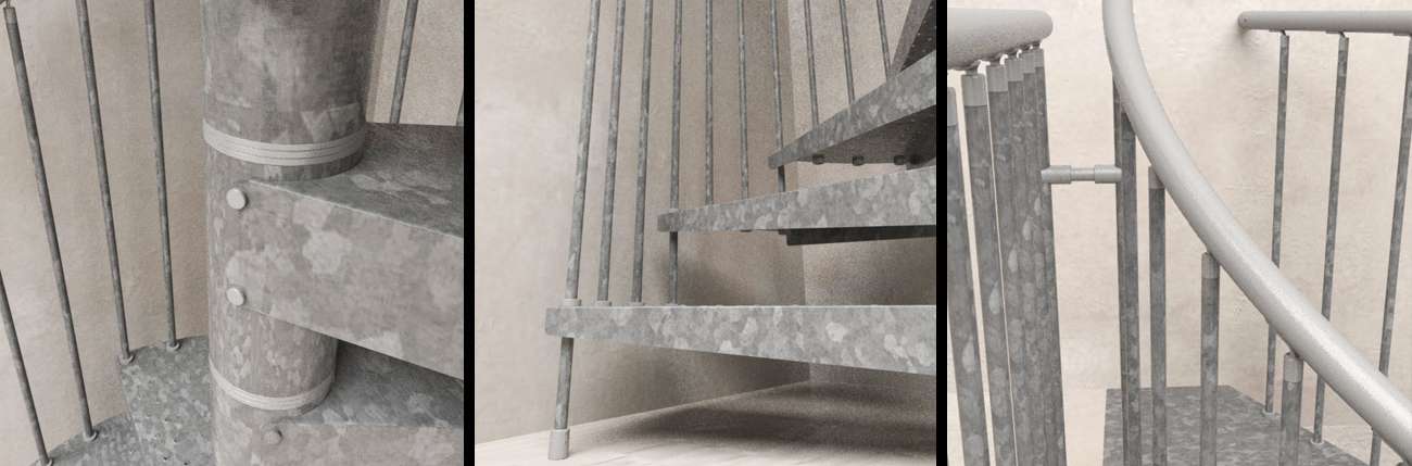 Die F20Z ist die Spindeltreppe par excellence: ästhetisch, robust und einfach zu montieren – und das zu einem sehr attraktiven Preis. Dank ihrer feuerverzinkten Oberfläche ist sie hervorragend für den Außenbereich geeignet und bietet eine außergewöhnliche Widerstandsfähigkeit gegen Witterungseinflüsse.