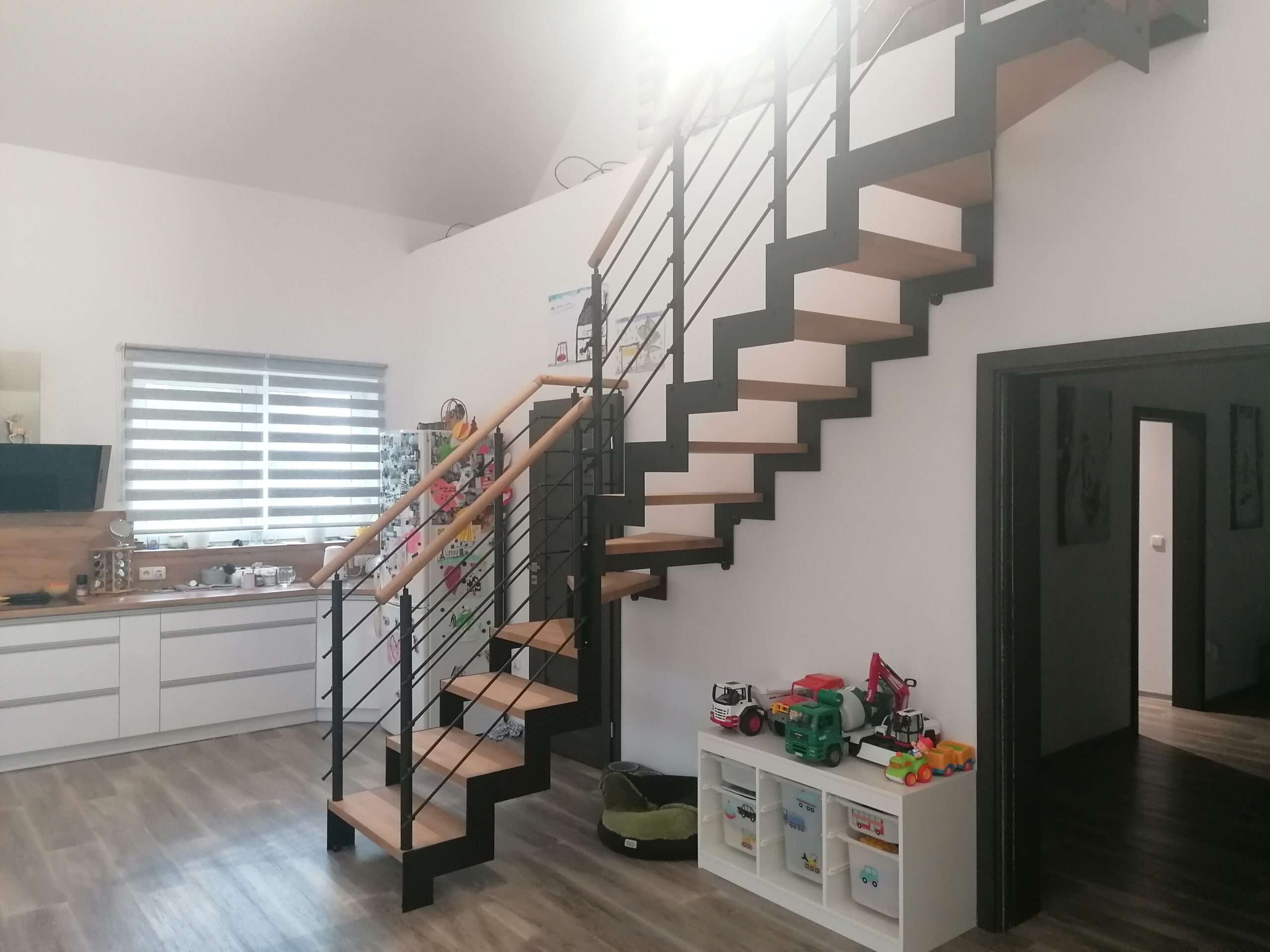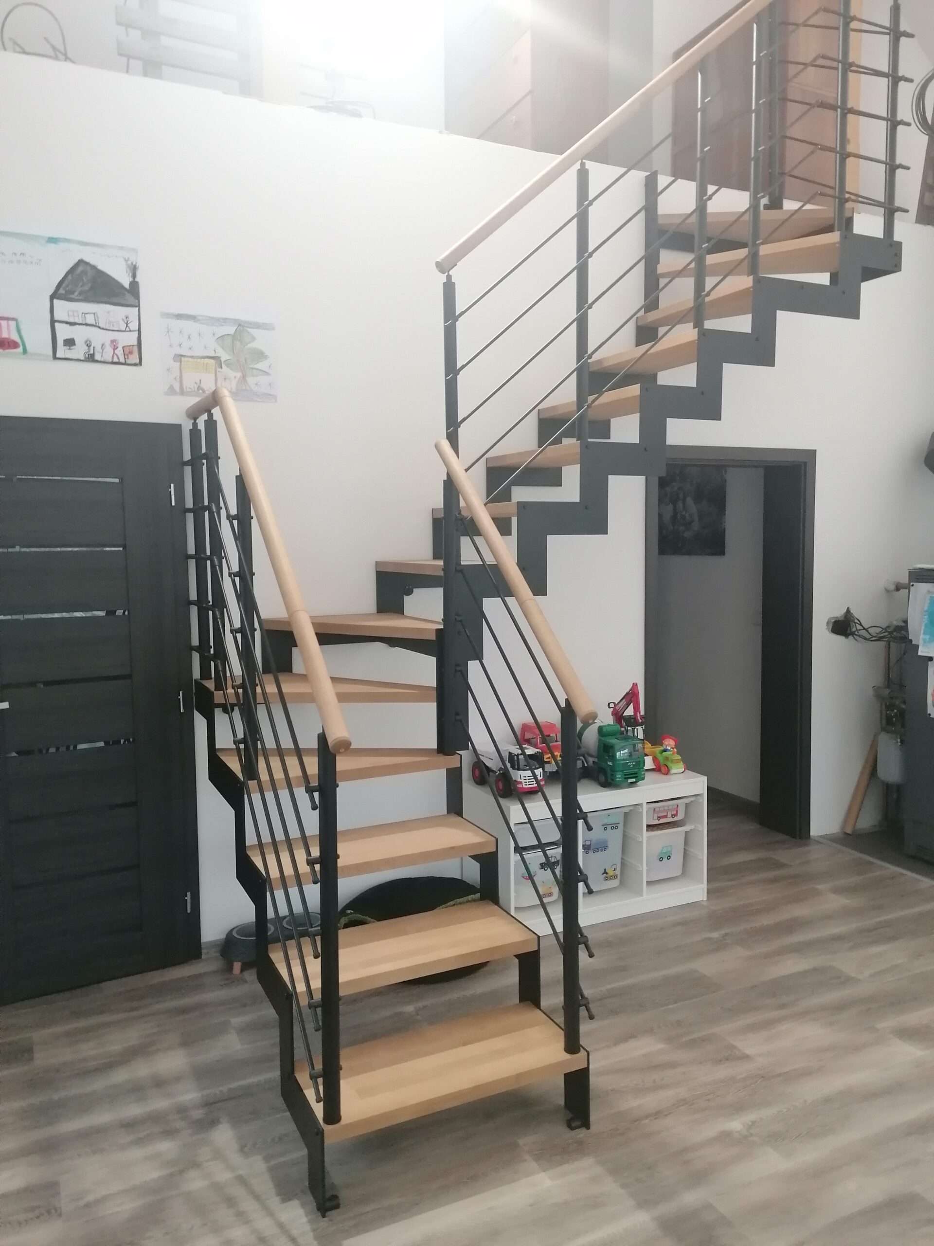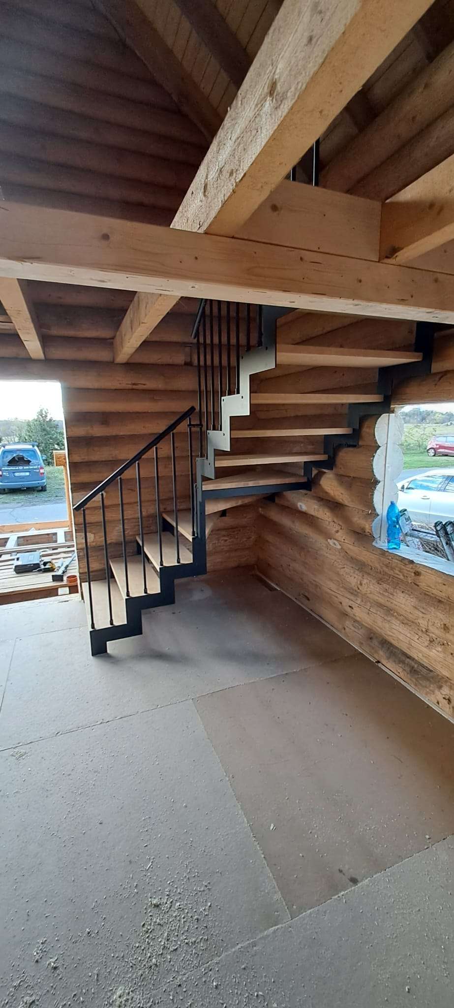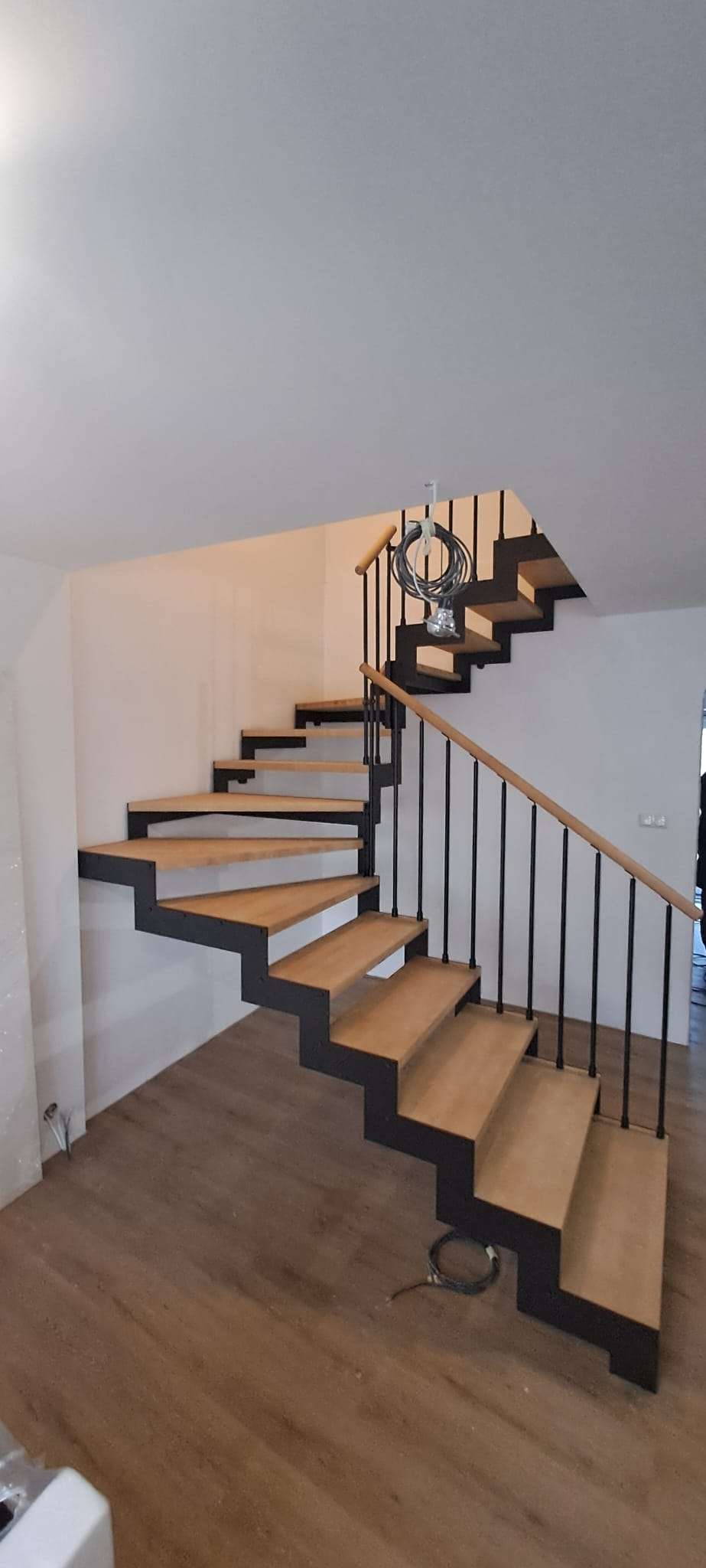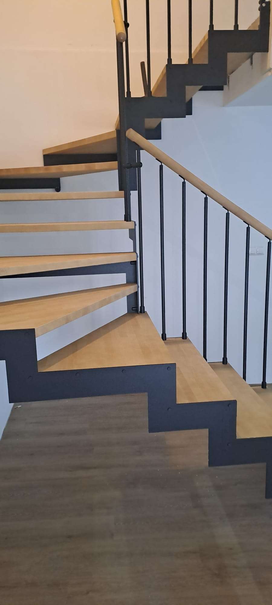 • Offene Treppe mit doppelter seitlicher Stahlstruktur in moderner Z‑Form