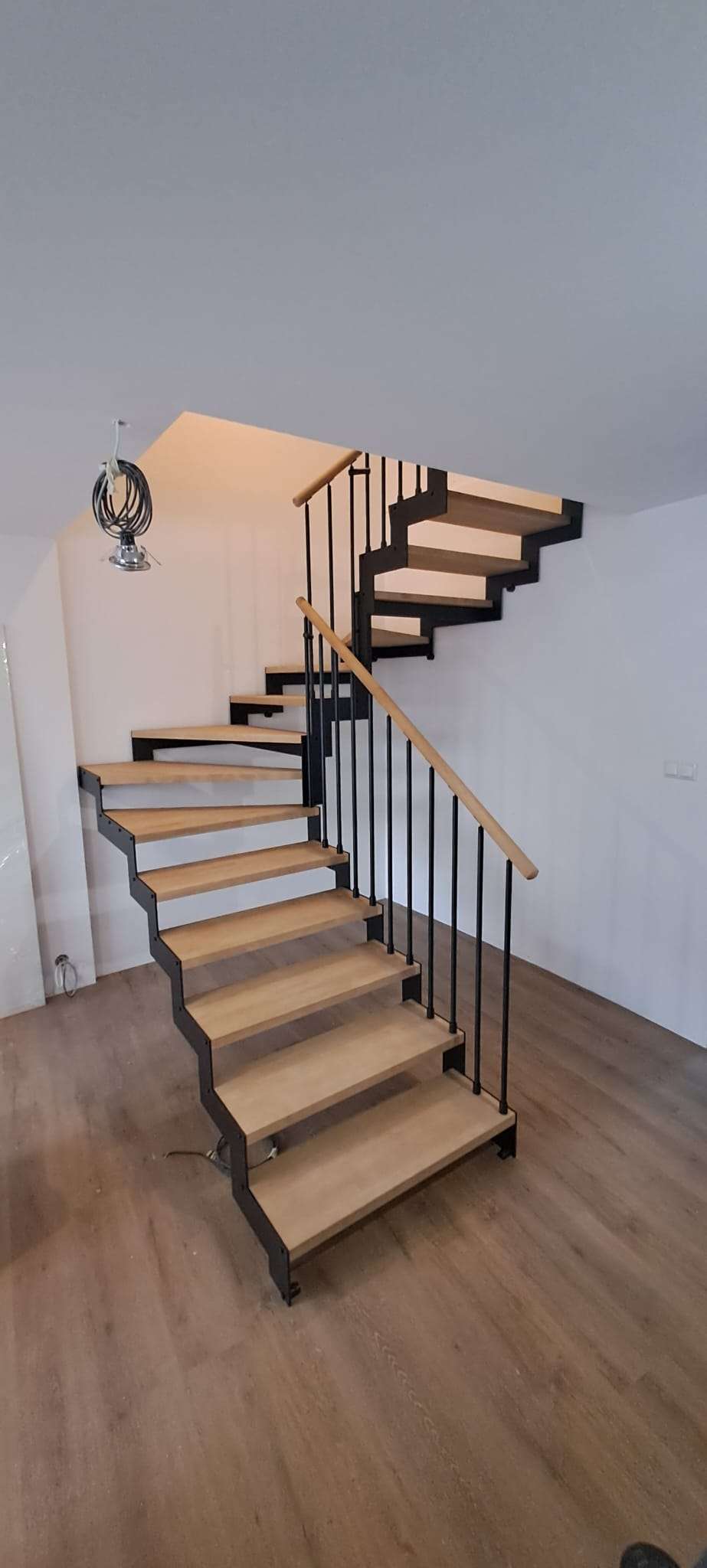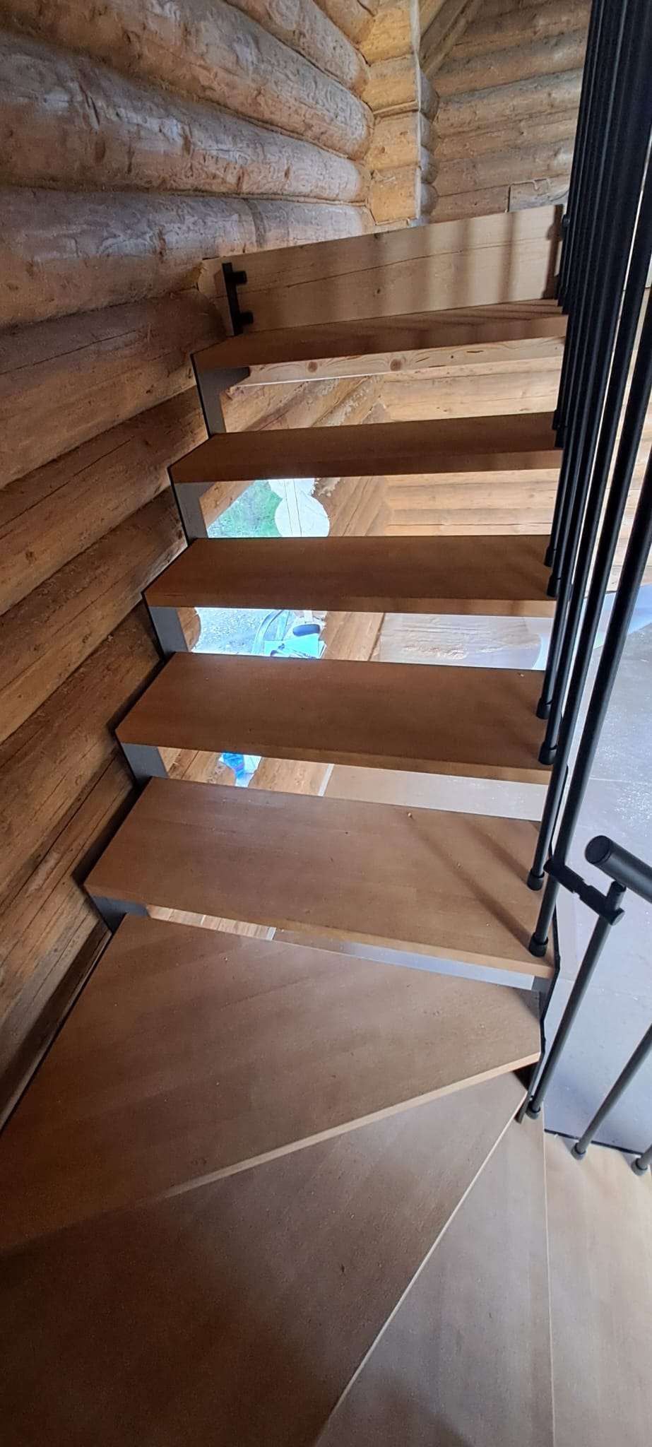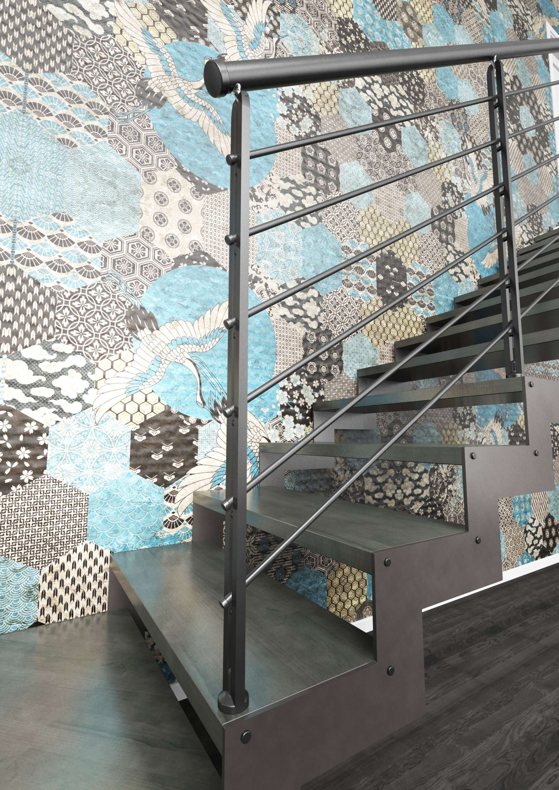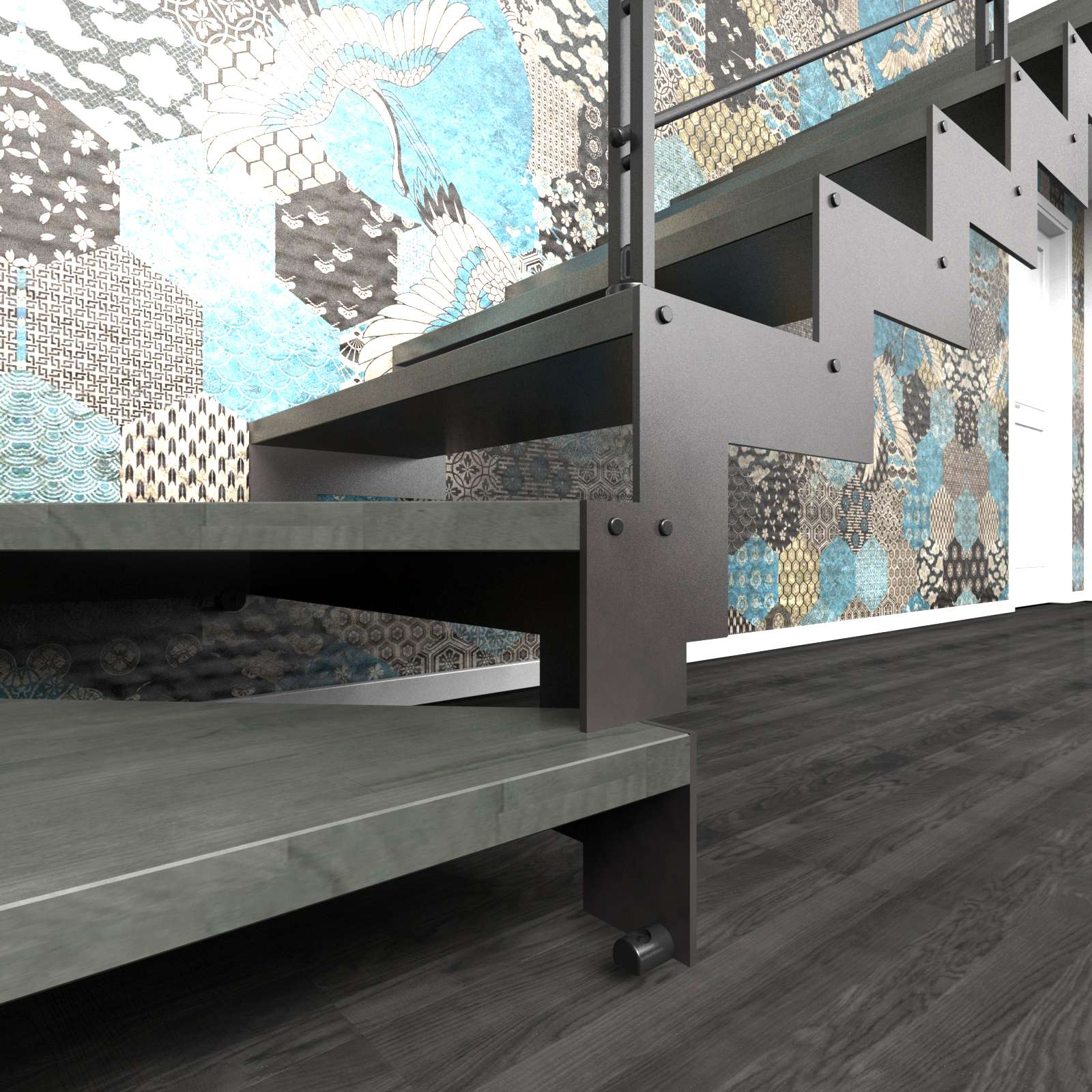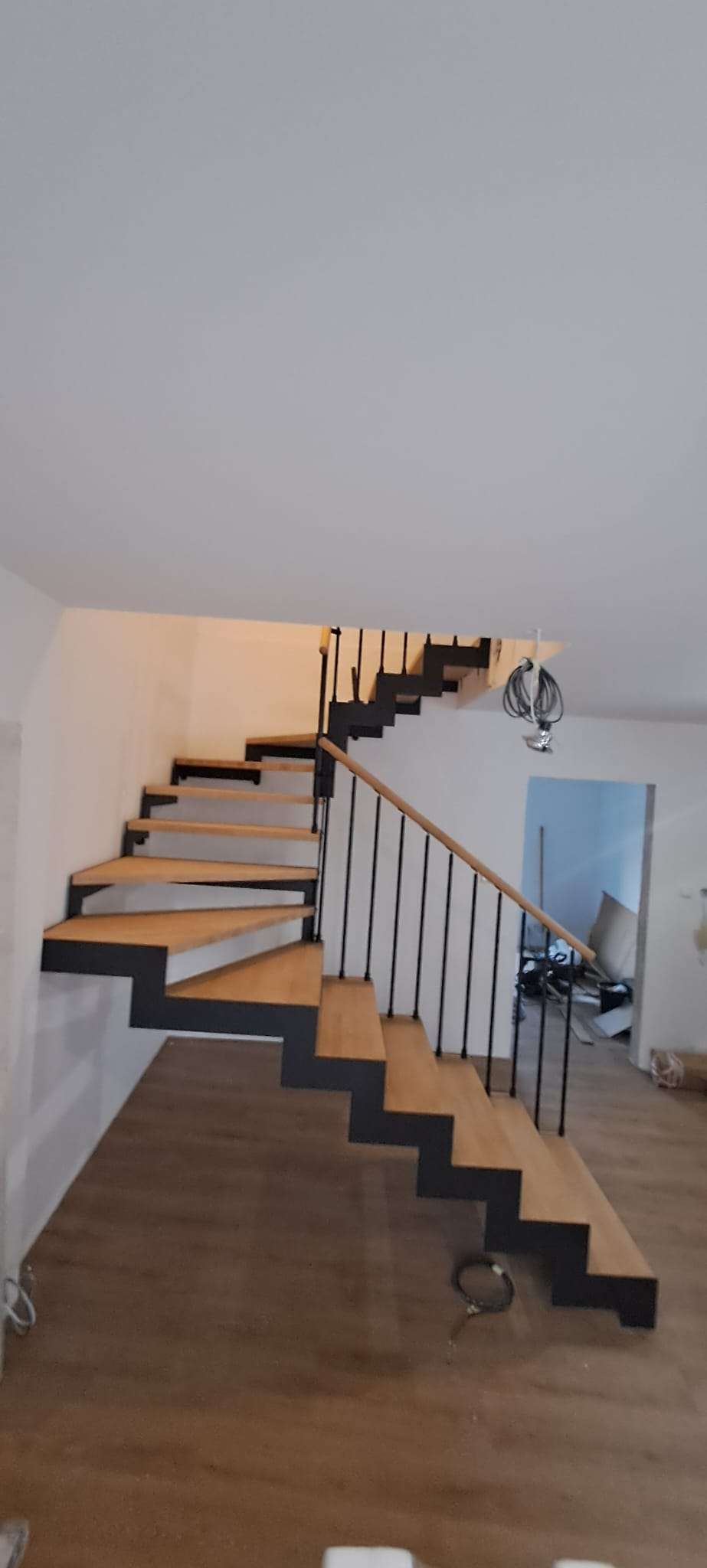 • Offene Treppe mit doppelter seitlicher Stahlstruktur in moderner Z‑Form