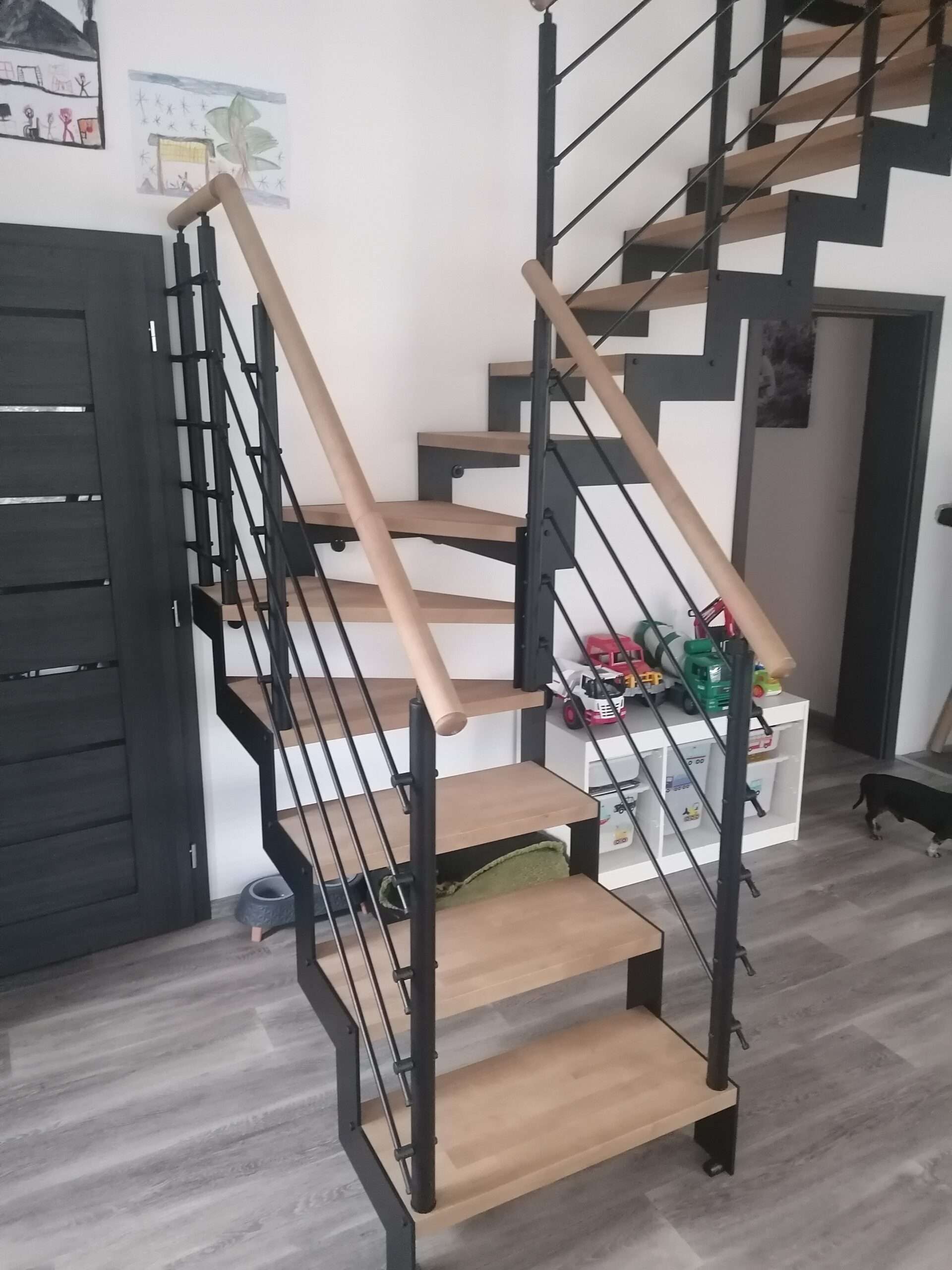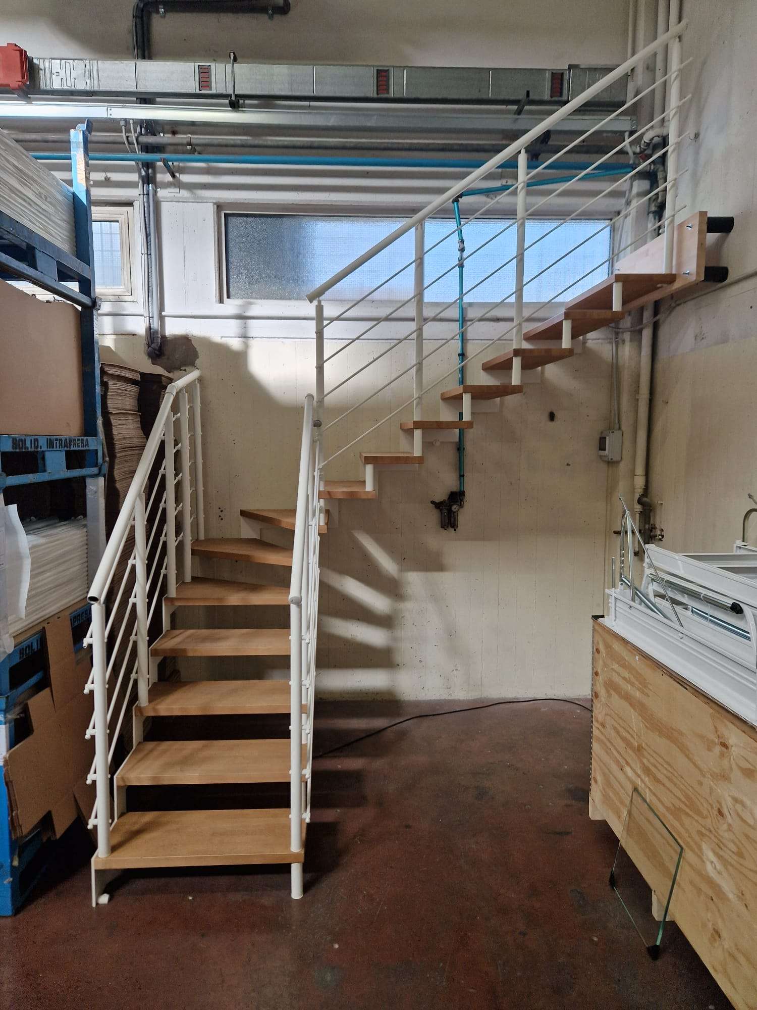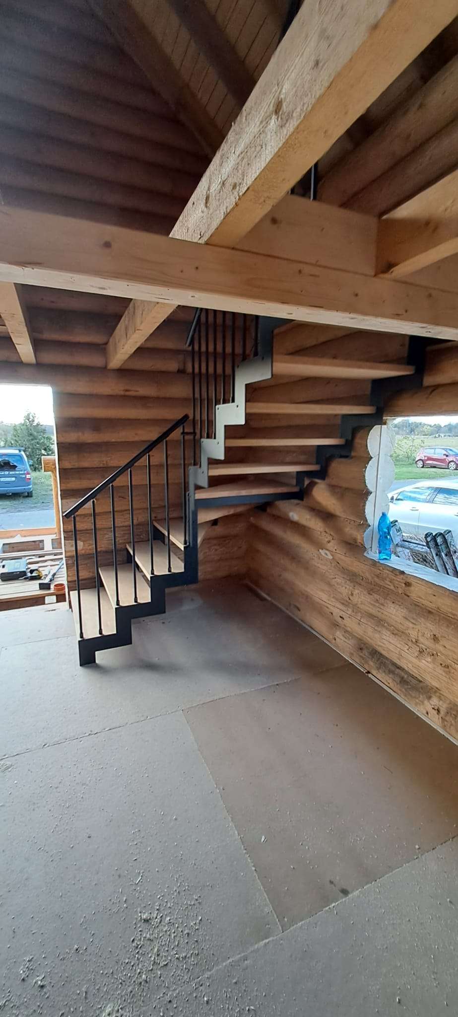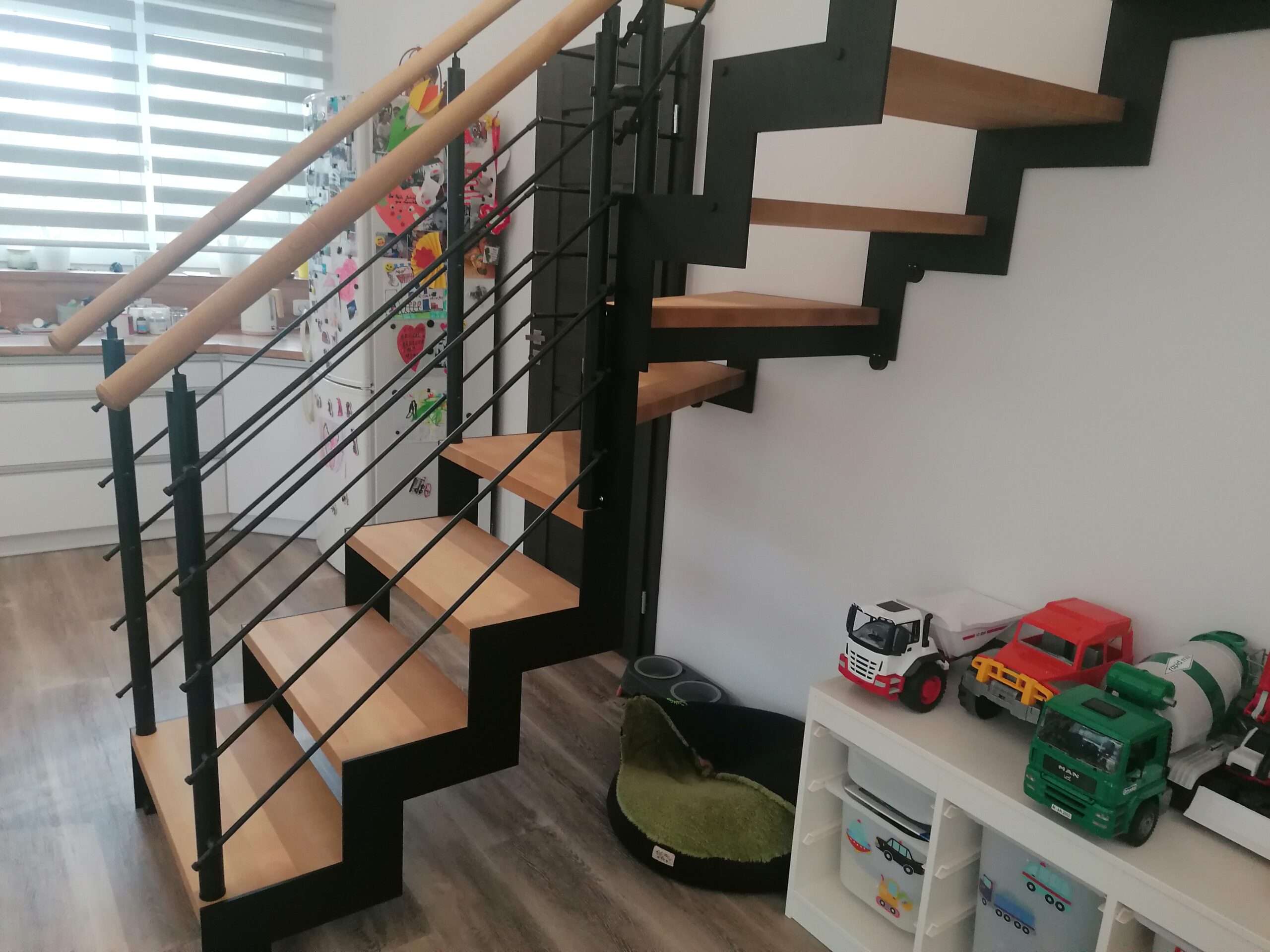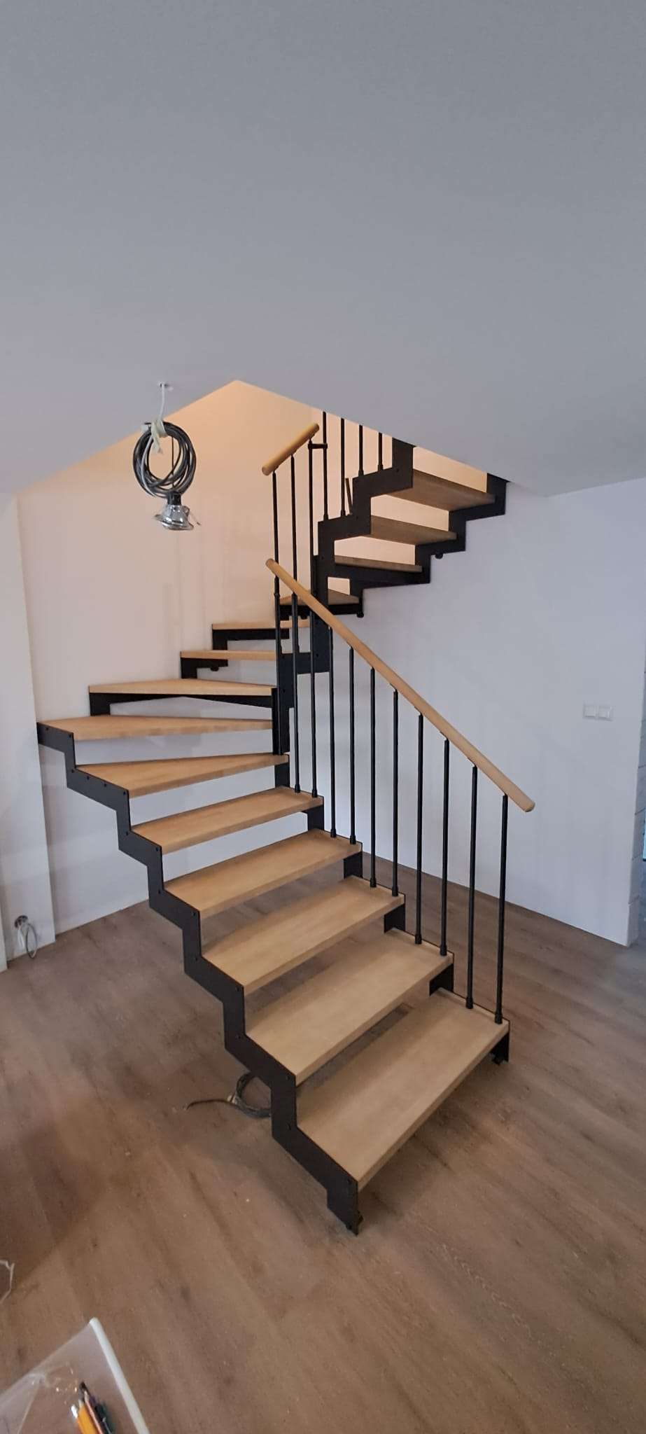 • Offene Treppe mit doppelter seitlicher Stahlstruktur in moderner Z‑Form