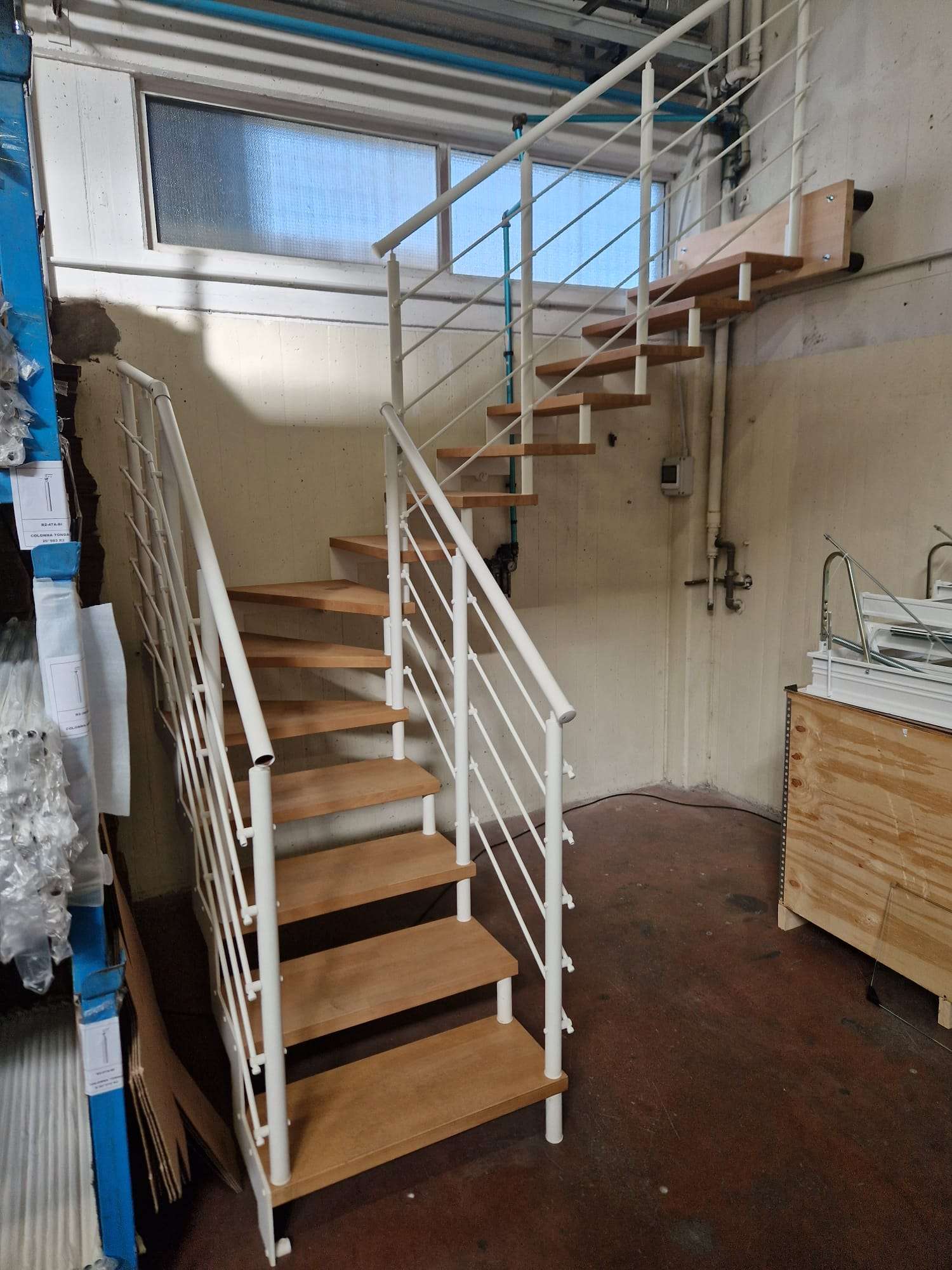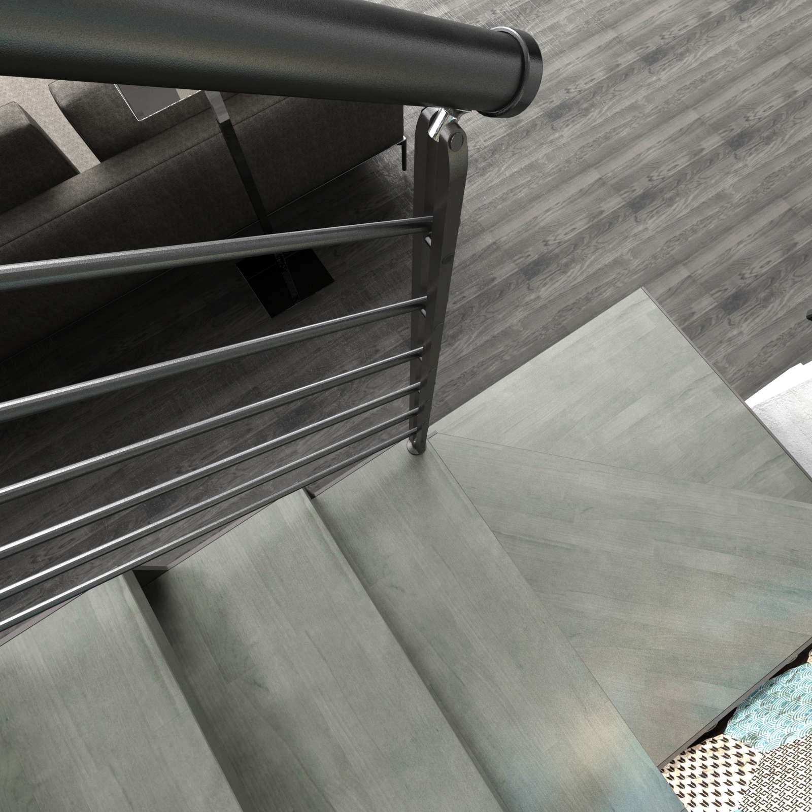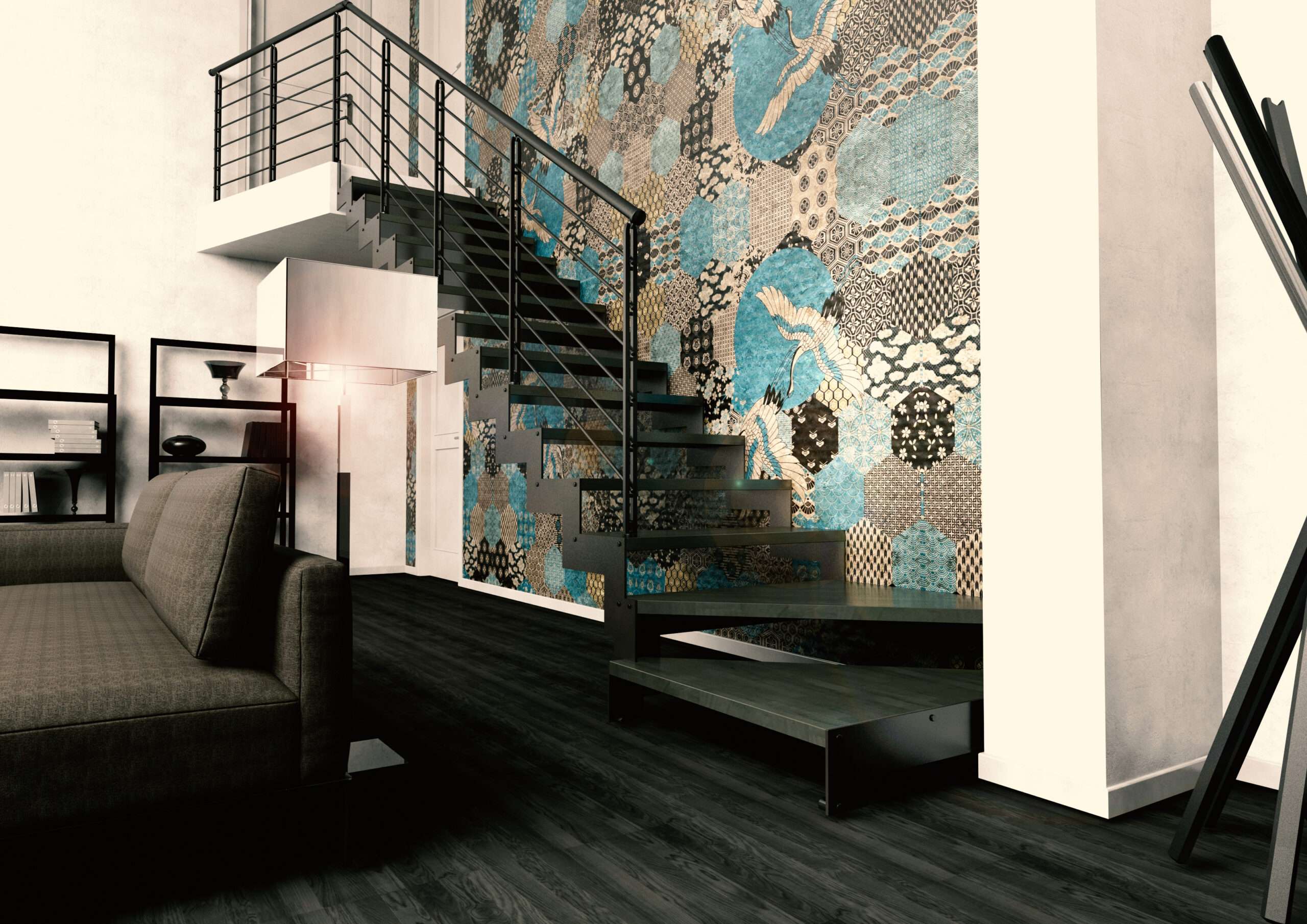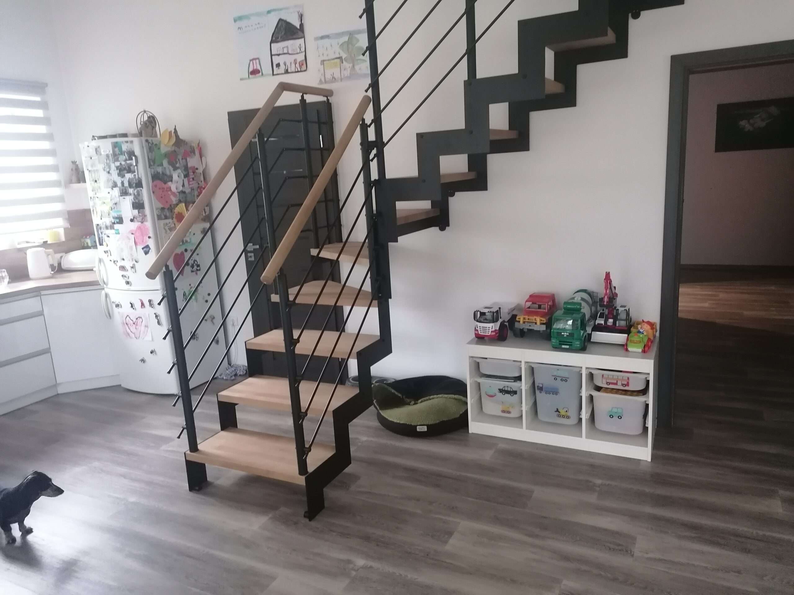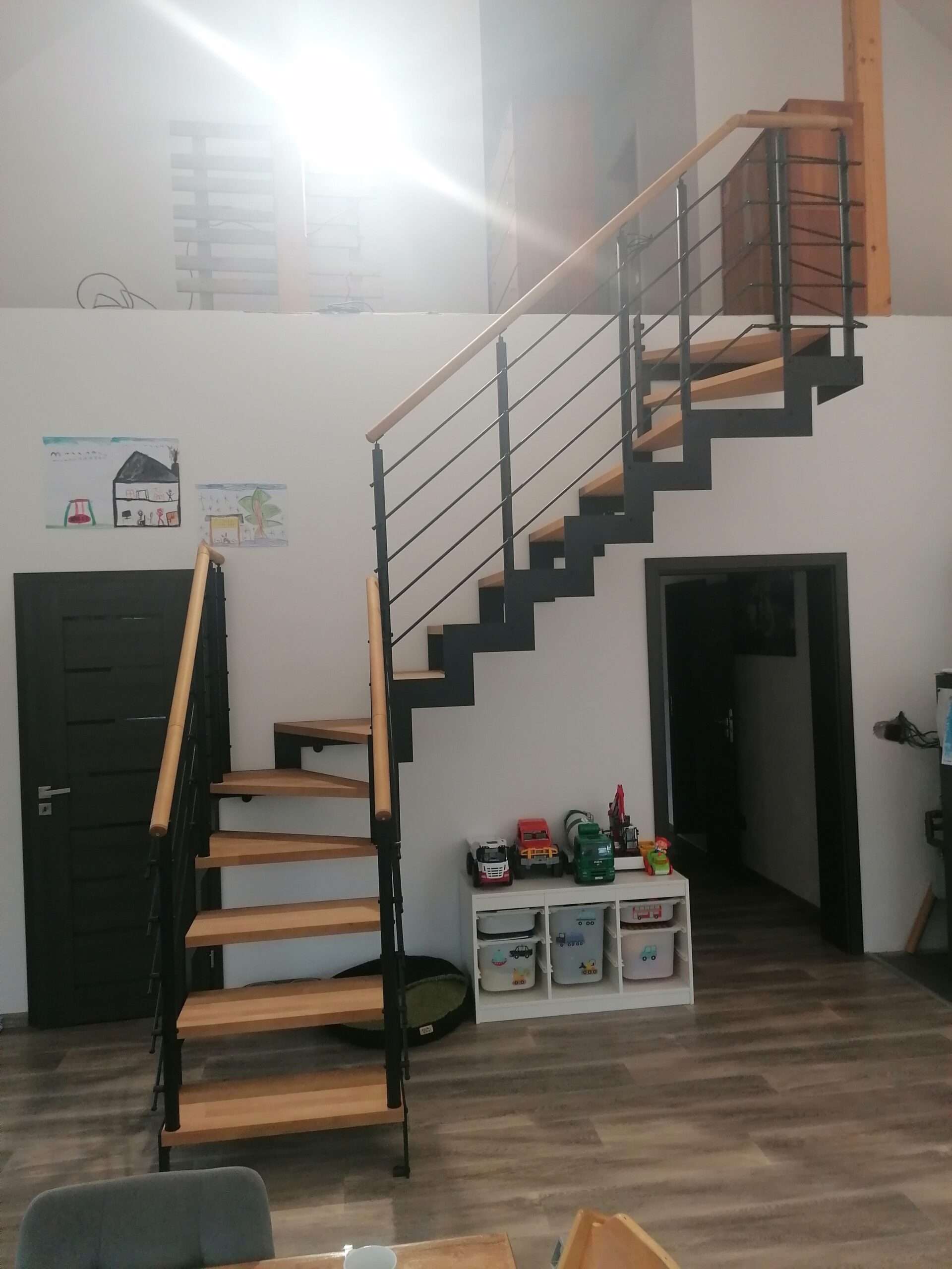 • Offene Treppe mit doppelter seitlicher Stahlstruktur in moderner Z‑Form