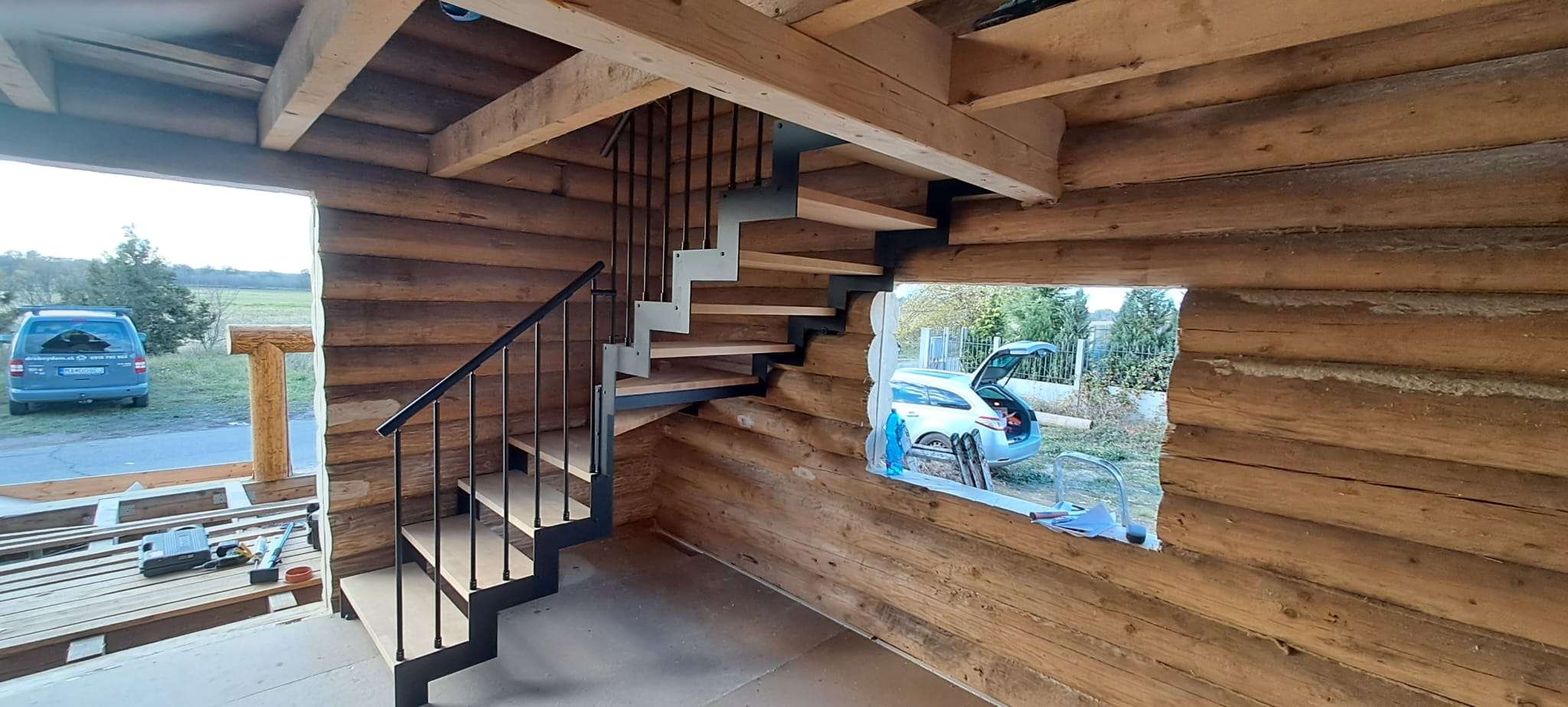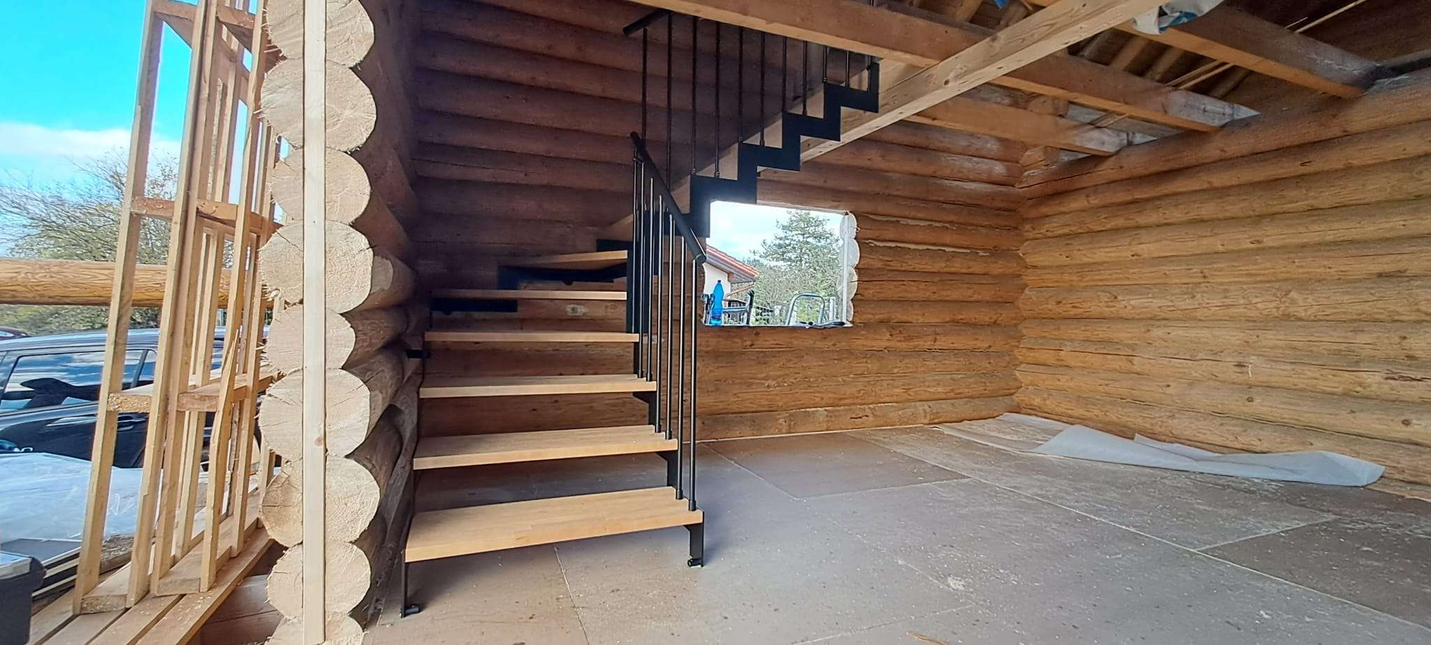 • Geländer aus Metallstäben, wahlweise mit Holz- oder Kunststoffhandlauf