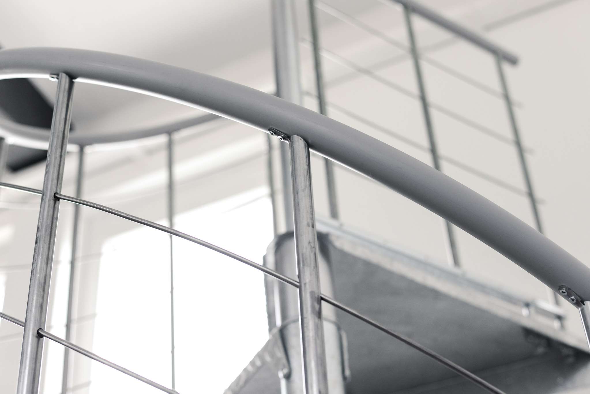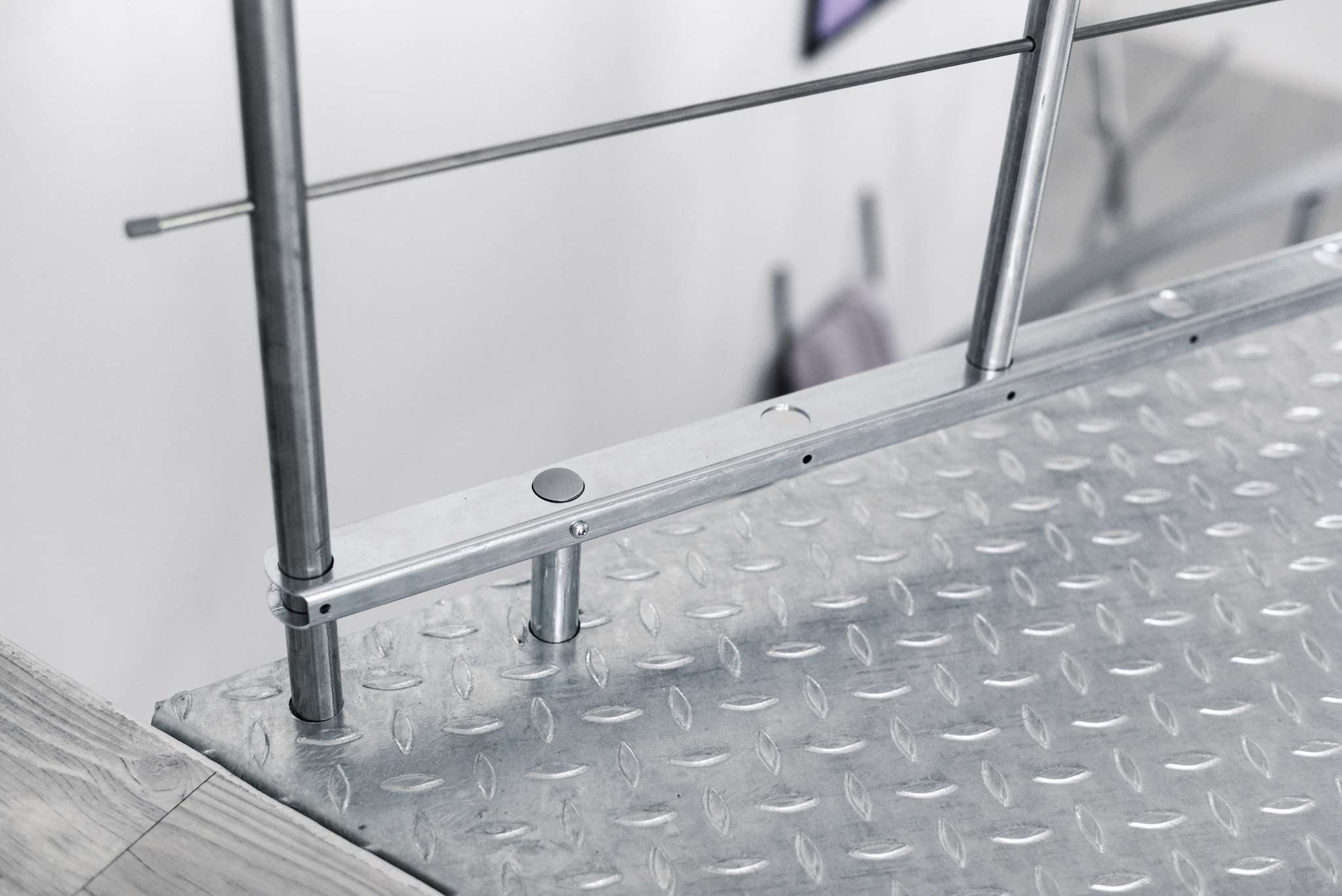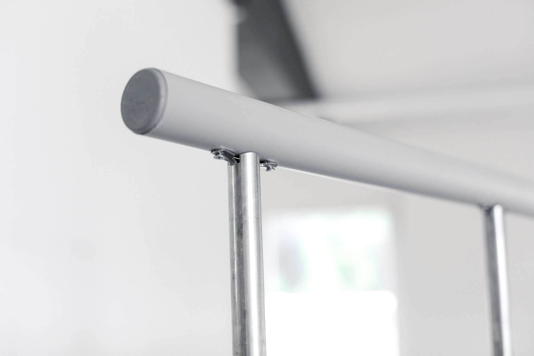 • Geländer mit Unterzügen aus Edelstahl und Handlauf aus hochwertigem PVC
