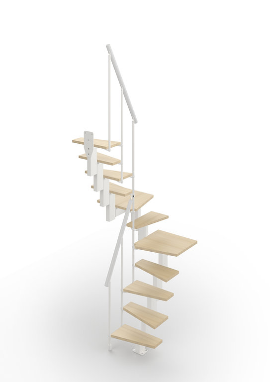 A lépcső lejtése 20 cm-től 24 cm-ig állítható (az első lépcsőfok fix magassága 20 cm). A lépcsőház igény szerint egyenesen vagy kiegészítő elemekkel is felszerelhető, mint 1x ferde („L”) vagy 2x ferde („U”) alaprajz.