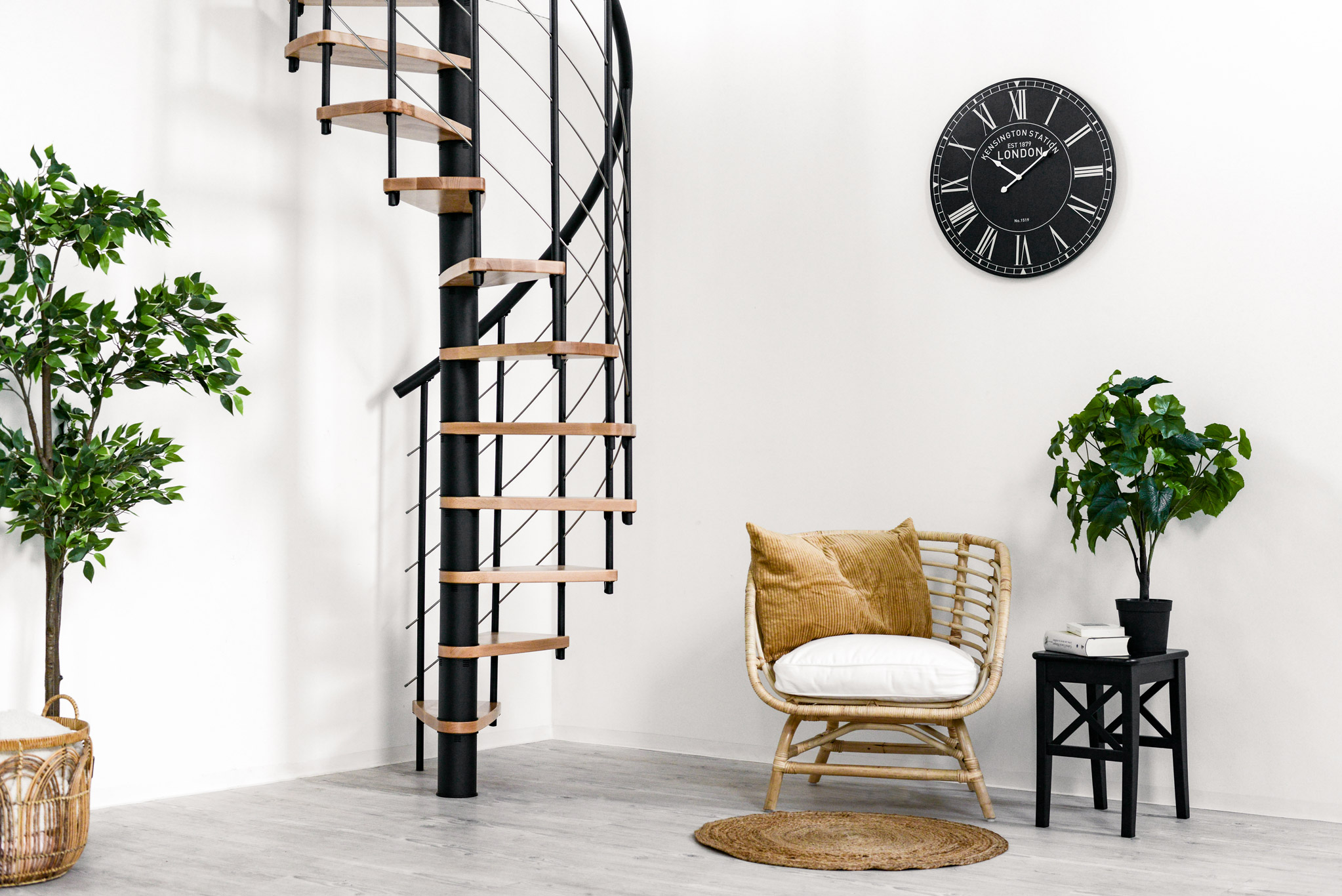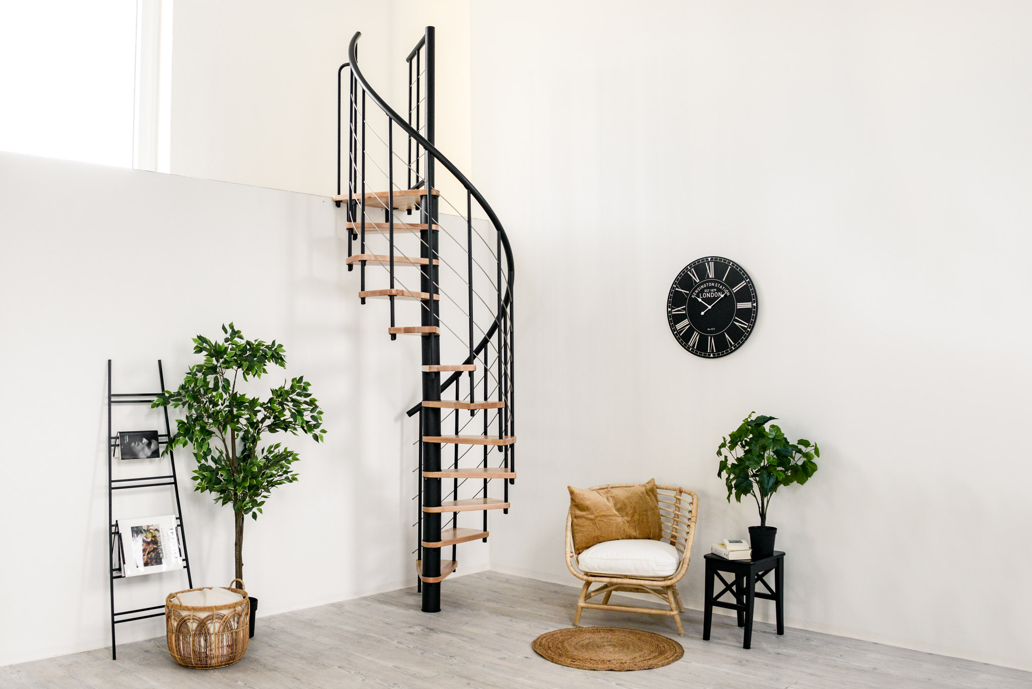 Kiváló minőségű fa dinamikus fémelemekkel kombinálva – ez teszi összetéveszthetetlenné a Venezia csigalépcsőt. Az ívelt rozsdamentes acél alsó akkordok elegánsan felfelé tekerednek, és a Veneziát otthona vizuális fénypontjává teszik. Különösen a számos fa változat gondoskodik arról, hogy a Venezia csigalépcső bármilyen helyiséghelyzethez igazítható legyen.
