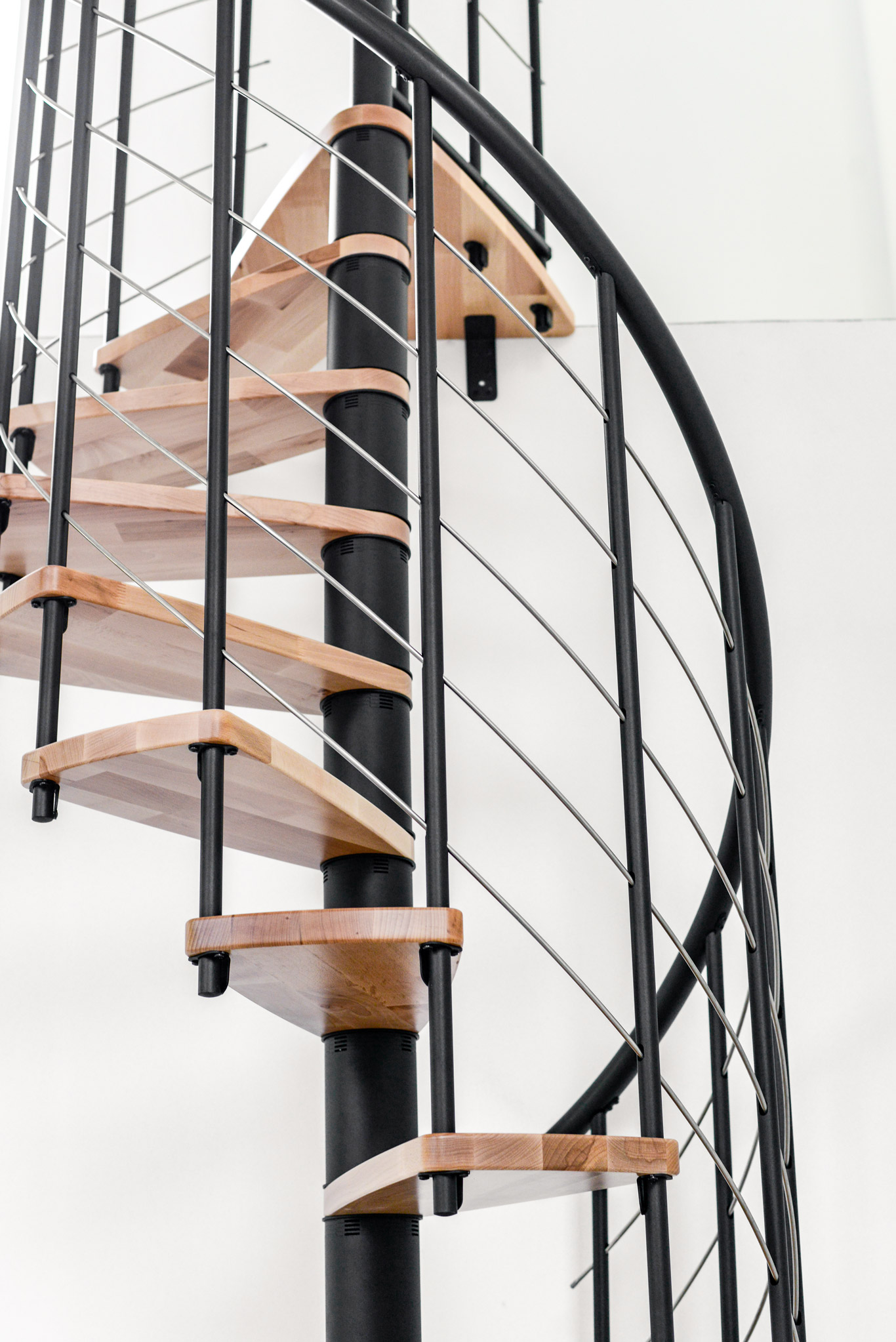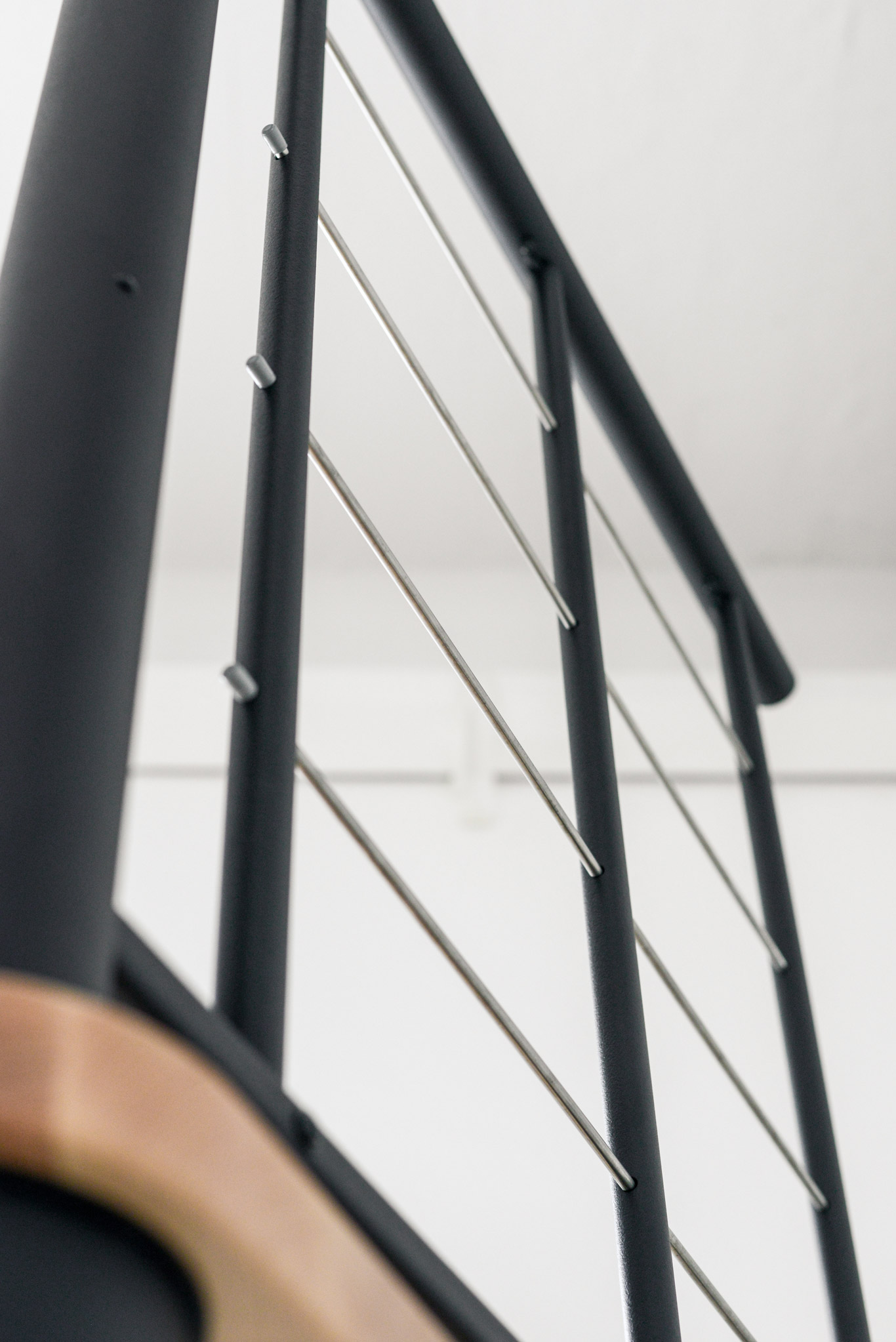 A Venezia fém alkatrészei kiváló minőségű porbevonattal vannak ellátva. A rozsdamentes acél alsó húrokkal és a lakkozott fa lépcsőkkel együtt az eredmény kiváló minőség és sérülésállóság. A Minka Venezia csigalépcsőjével Ön és családja élete végéig biztonságos társat kap a felfelé vezető úton.