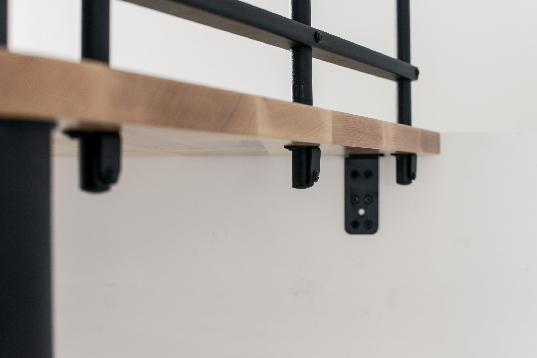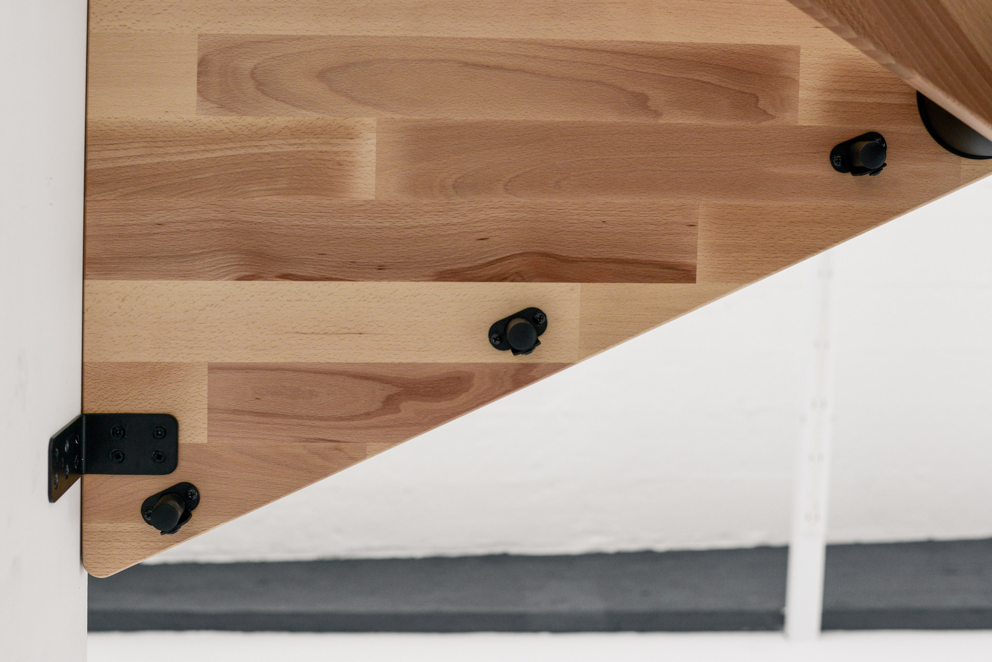 - A fa és fém elemek kombinációja elegáns és dinamikus megjelenést kölcsönöz