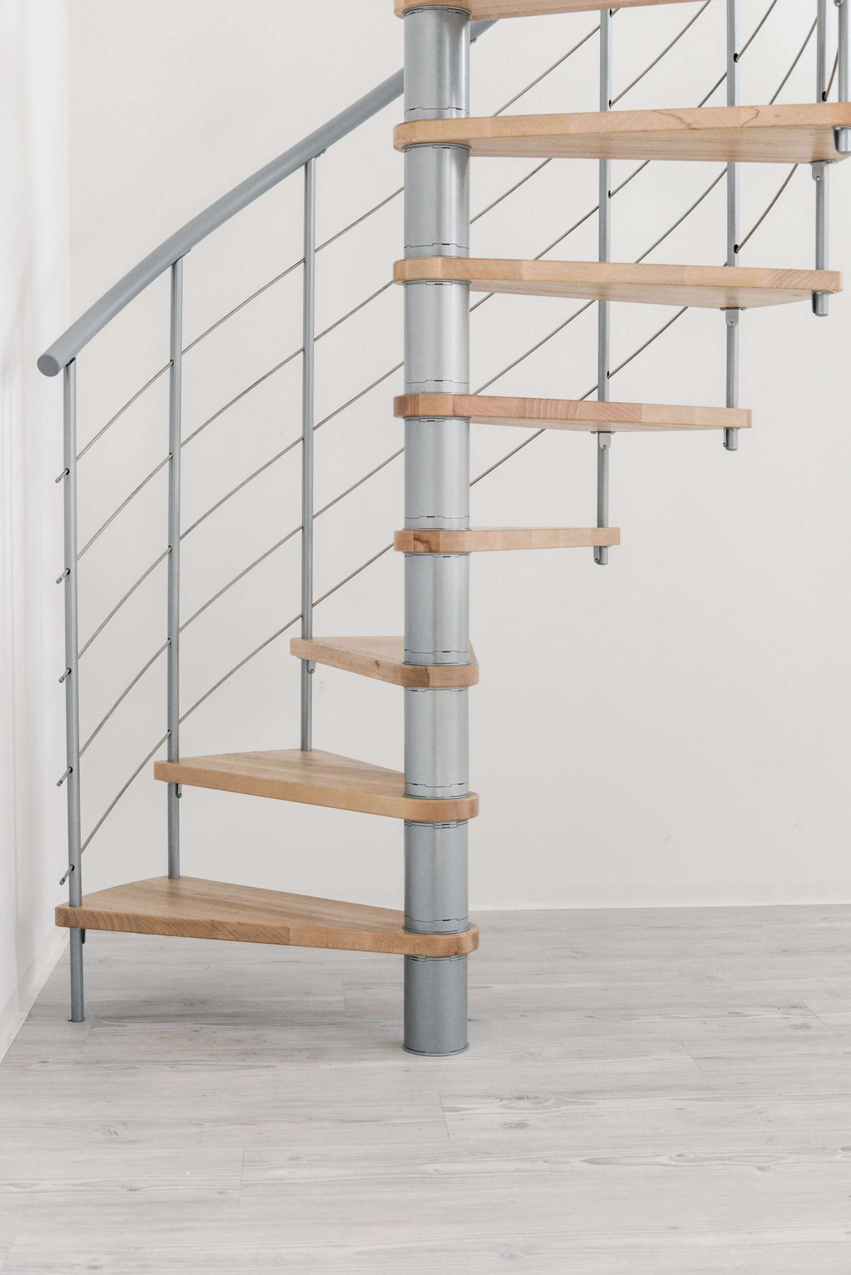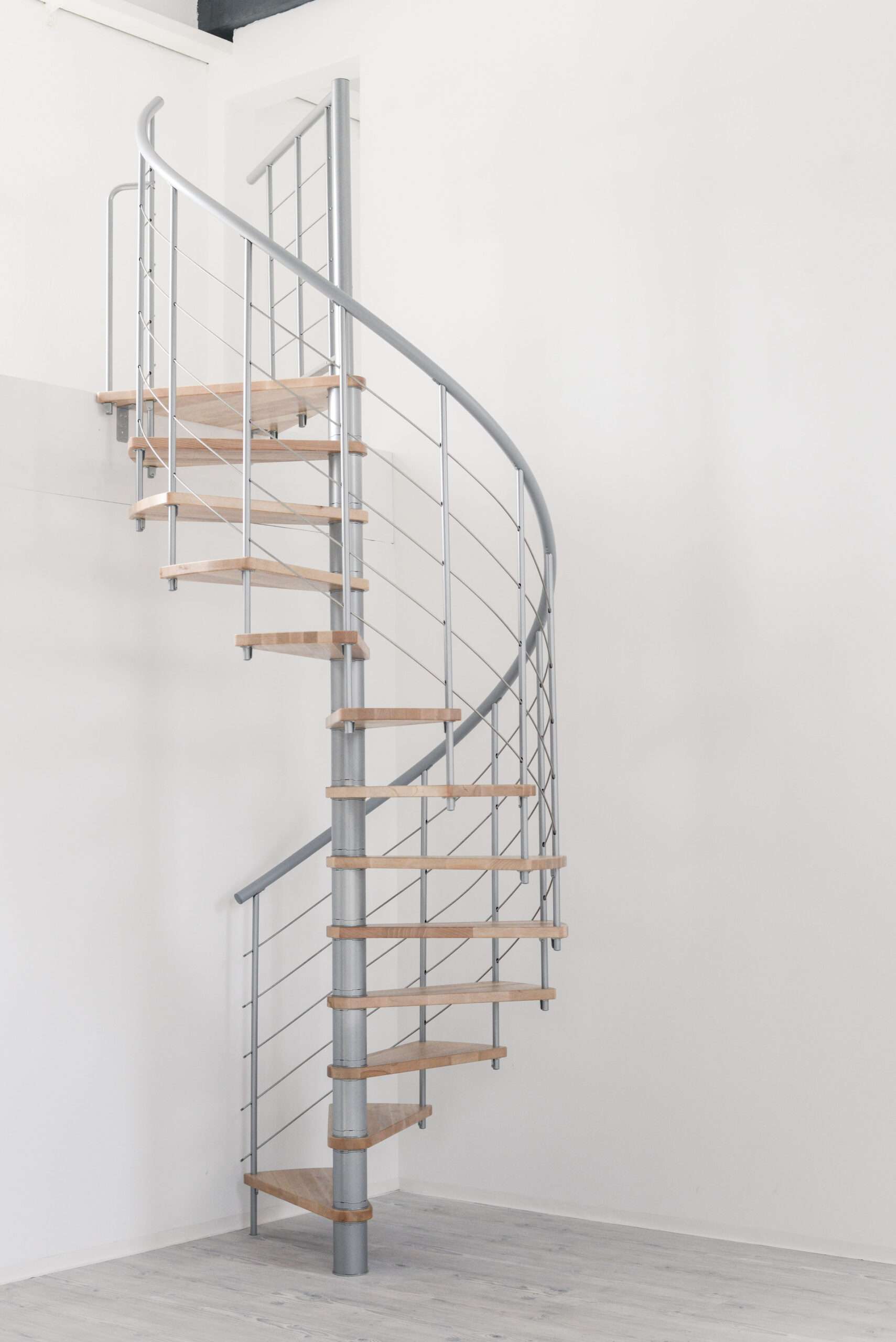 Wysokiej jakości drewno połączone z dynamicznymi metalowymi elementami – to właśnie sprawia, że spiralne schody Venezia wyglądają nie do pomylenia. Zakrzywione dolne struny ze stali nierdzewnej elegancko unoszą się ku górze i sprawiają, że Venezia jest wizualnym punktem w Twoim domu. W szczególności liczne drewniane warianty gwarantują, że spiralne schody Venezia mogą być dostosowane do każdego pomieszczenia.