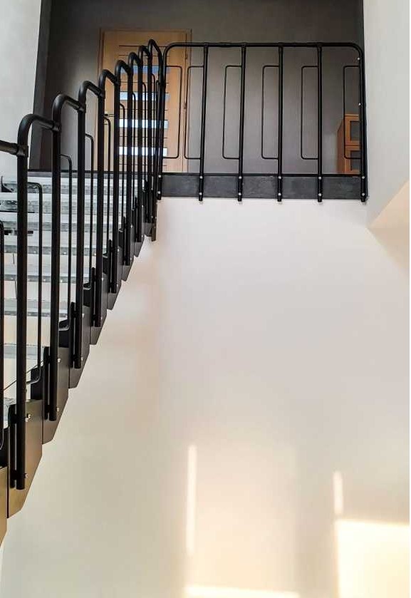 Geländer ASTA – Modell #2 – Pfostenkonstruktion mit vertikaler Füllung und oberer Biegung (ohne Handlauf)