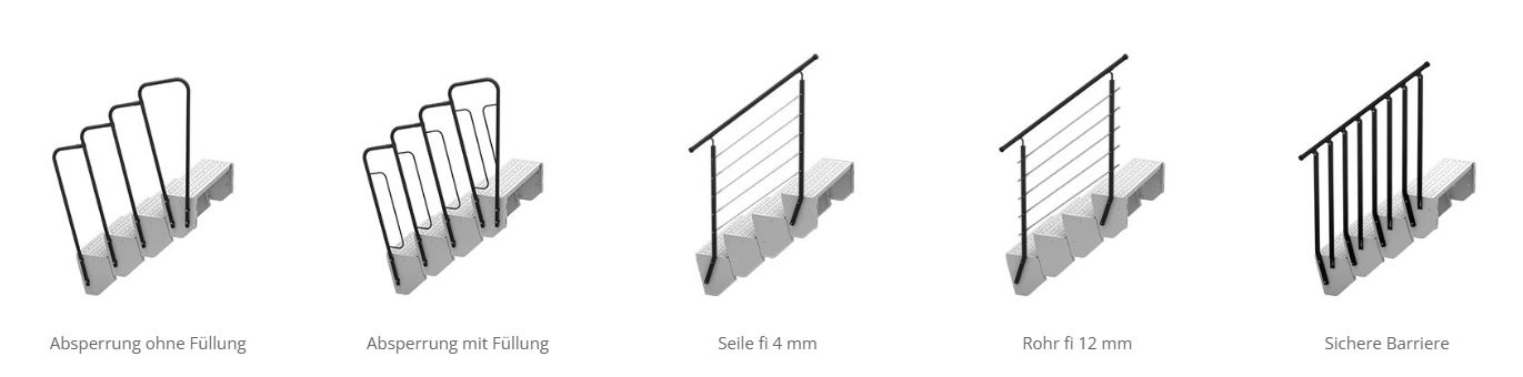 Die Länge des Geländers hängt von der Anzahl der Pfosten ab; Modul-Länge pro Stufe: 260 mm