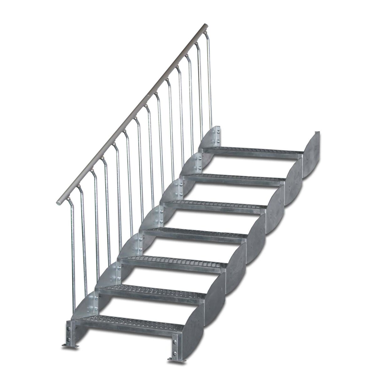 Die Wangentreppe SCARLO 1000 vereint stilvolle Ästhetik mit funktionalem Design. Mit einer großzügigen Stufenbreite von 100 cm und einem geradlinigen Verlauf hebt sie sich von unseren anderen Treppenmodellen ab. Ab der ersten Stufe bietet sie eine komfortable Nutzhöhe von 38 cm, während bei mehreren Stufen die Steigungshöhe flexibel zwischen 18 und 20 cm angepasst werden kann, ganz nach deinen individuellen Bedürfnissen.