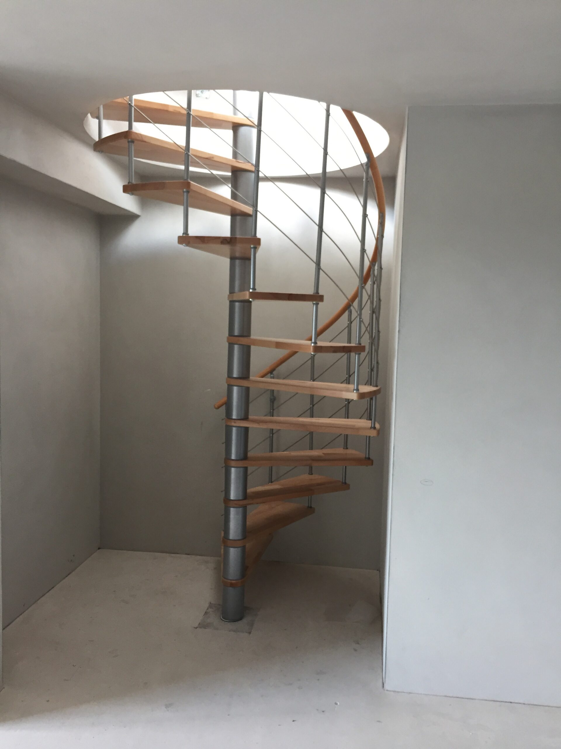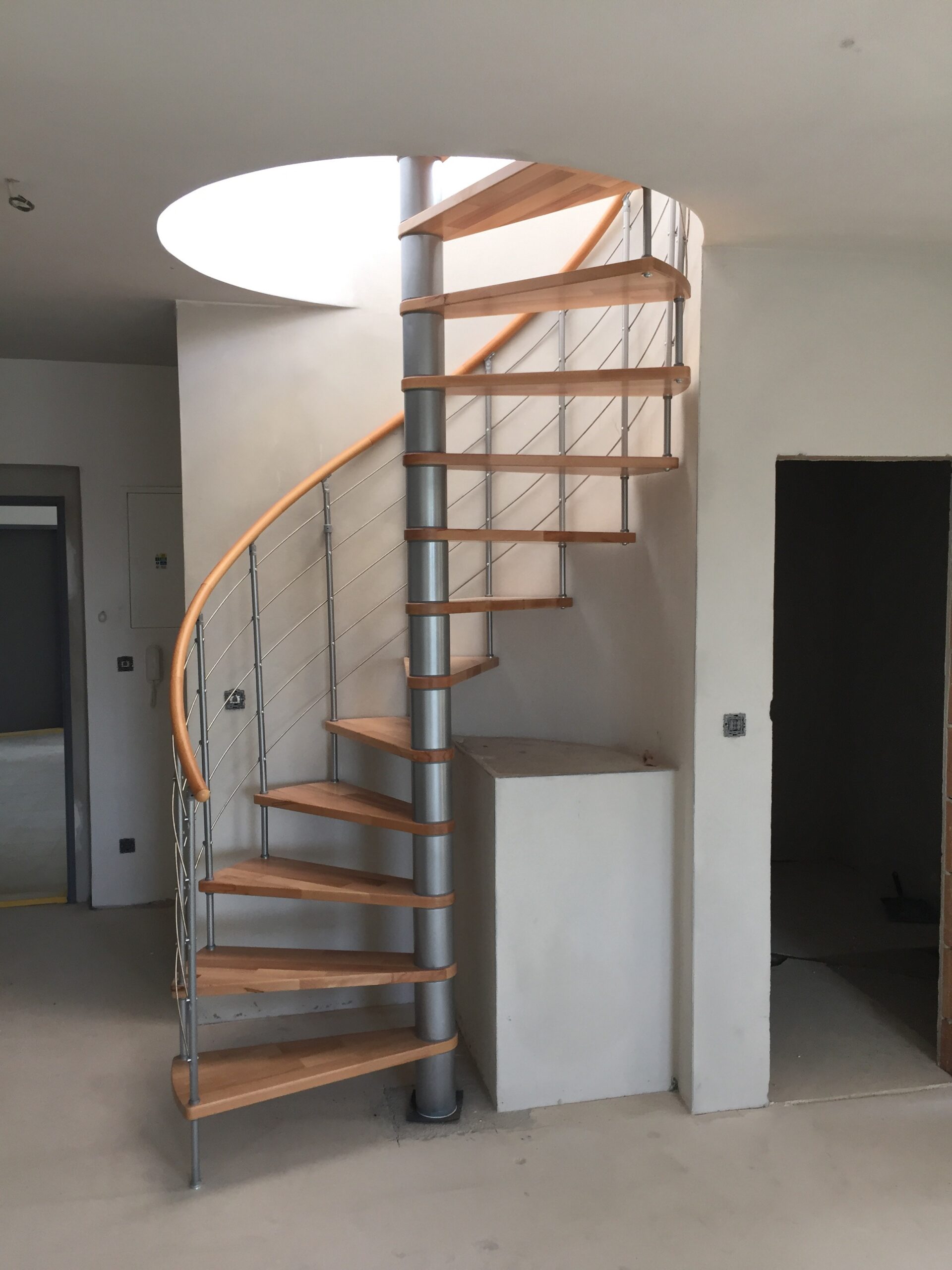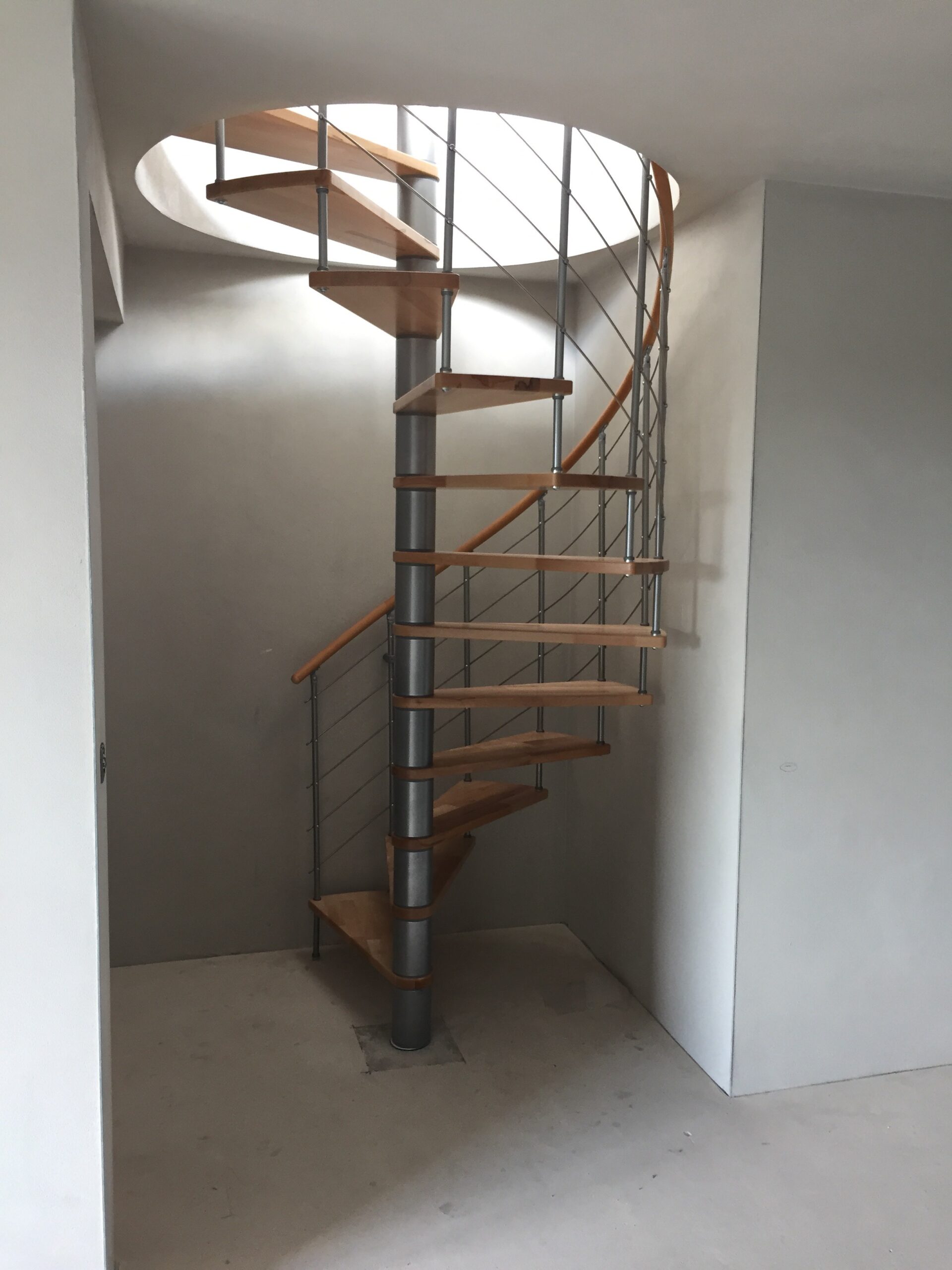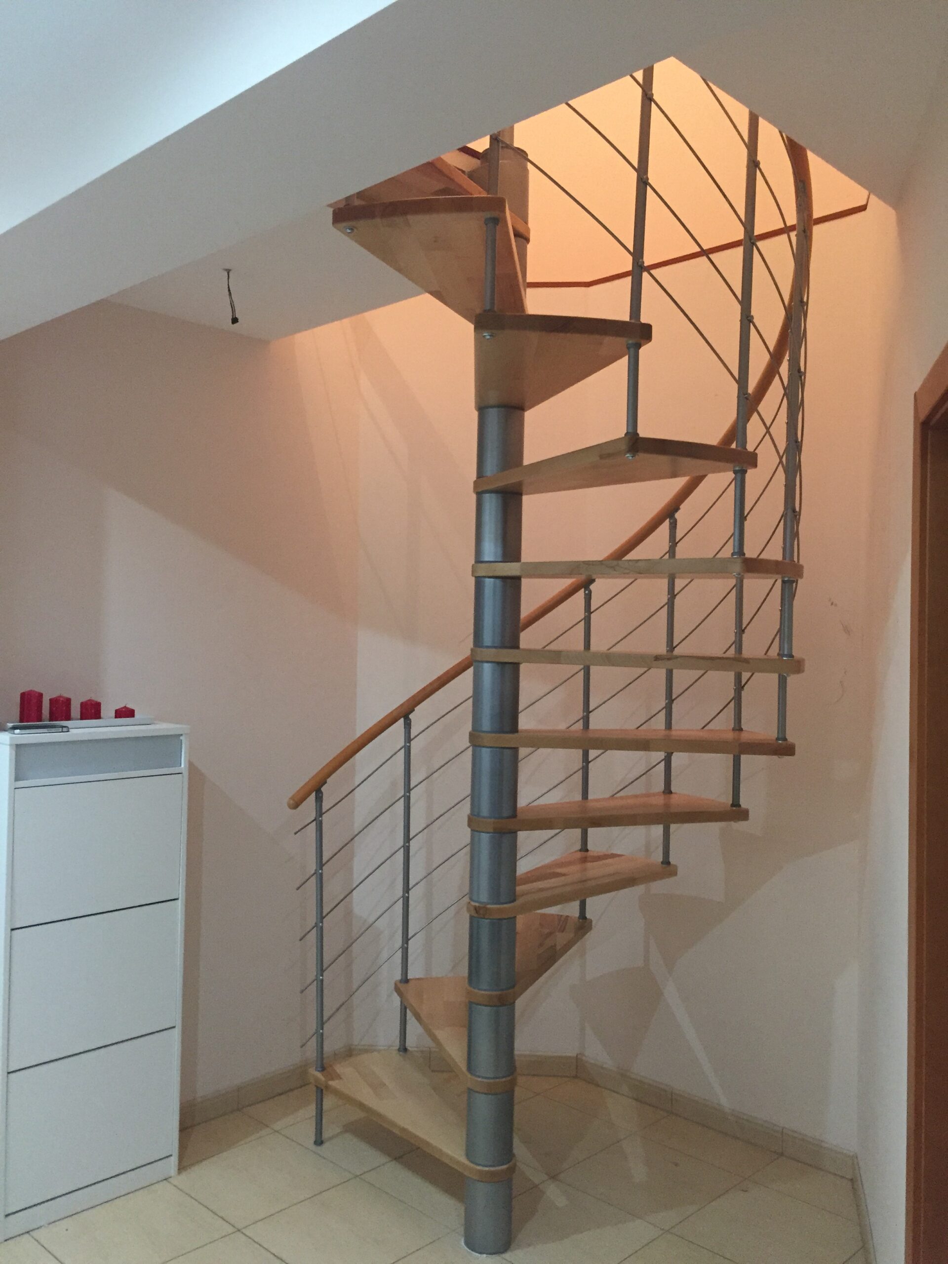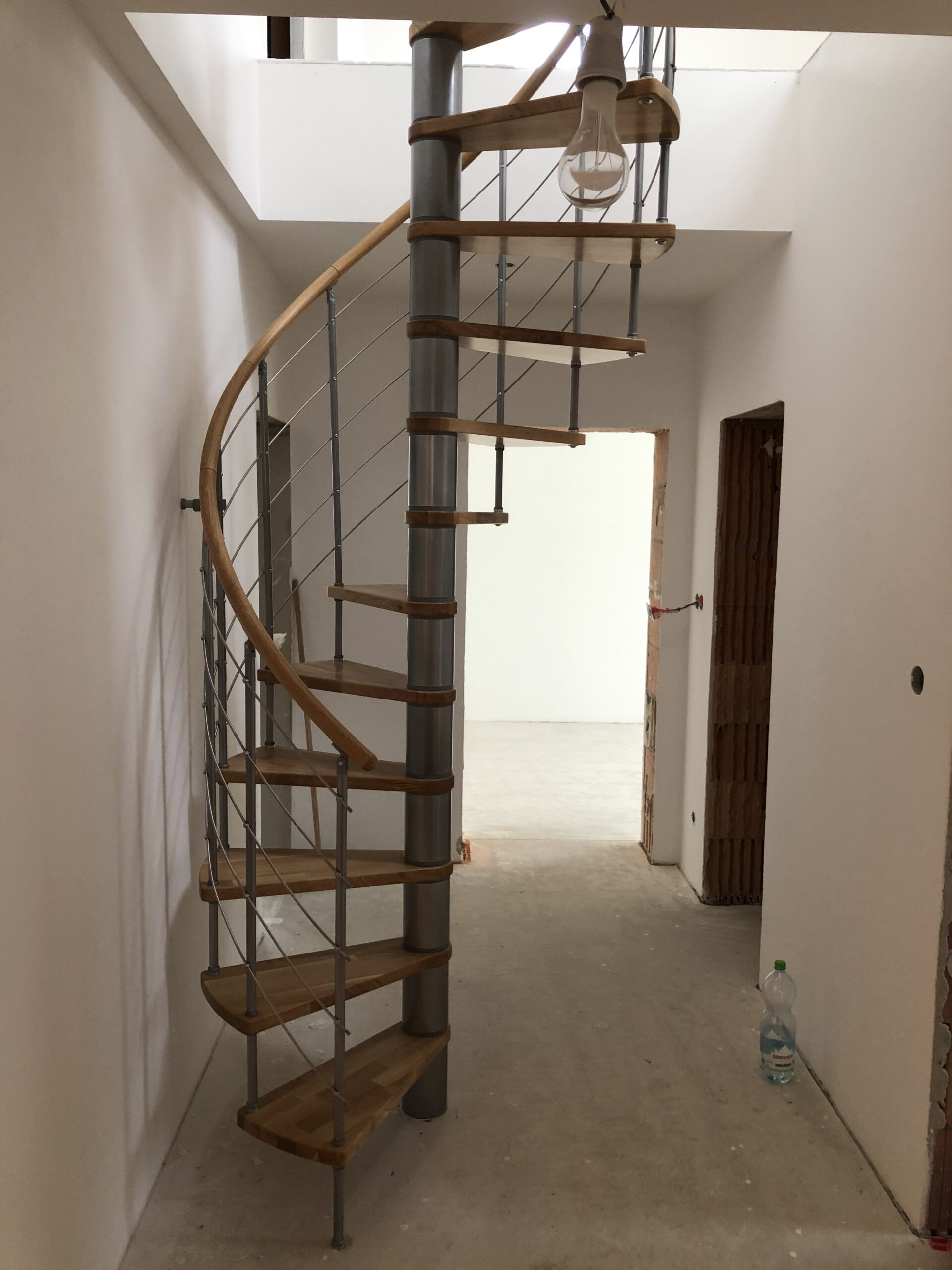 Die Spindeltreppe Spiral Smart ist in vier verschiedenen Größen erhältlich. Der Durchmesser kann 100, 120, 140 oder 160 cm betragen. Aber auch optisch bietet die Spiral Smart vielfältige Gestaltungsmöglichkeiten. Die Stufen bestehen entweder aus Eichenholz oder aus Buchenholz. Wahlweise gibt es die Buchenstufen außerdem auf eine dunklere Walnussoptik gebeizt oder in Weiß lackiert. Die Metallteile der Treppe sowie der Handlauf aus hochwertigem PVC können passend dazu entweder in Schwarz, Grau oder Weiß gewählt werden. Sie können sich Ihre Treppe also individuell zusammenstellen lassen, damit diese auf jeden Fall zu Ihrem Einrichtungsstil passt.