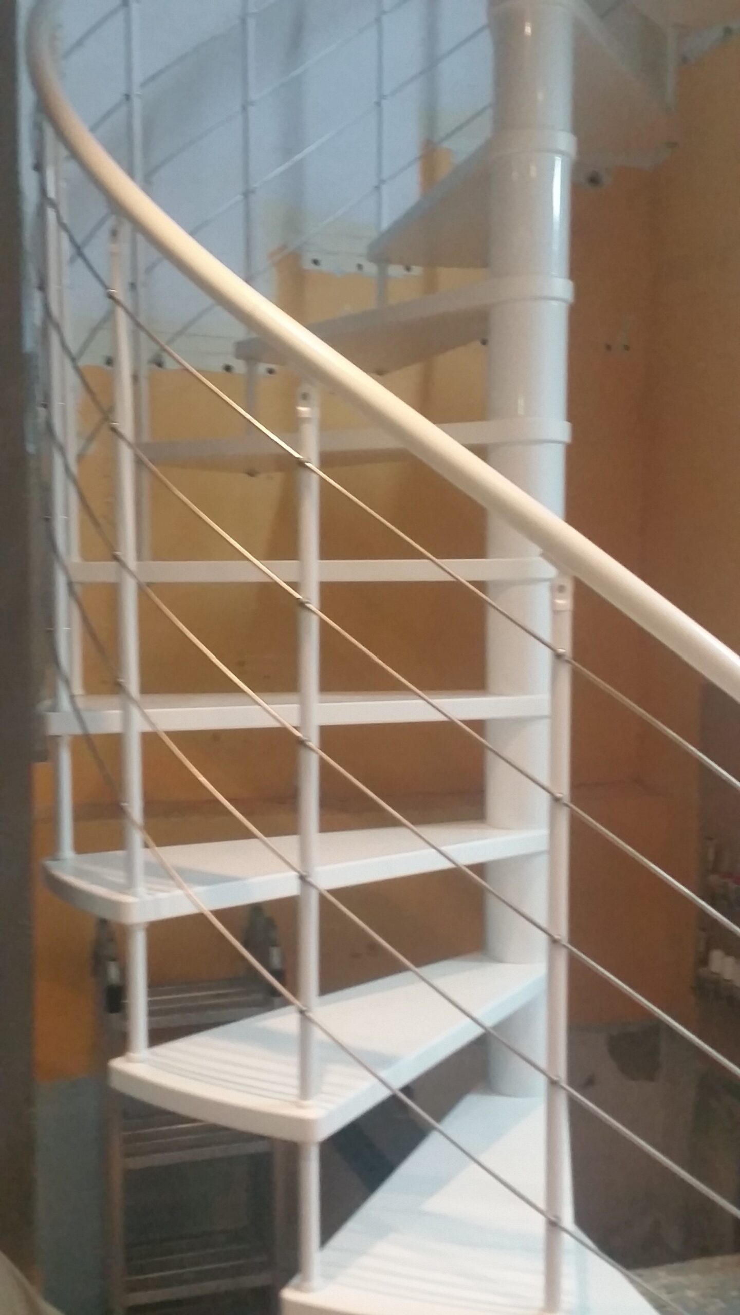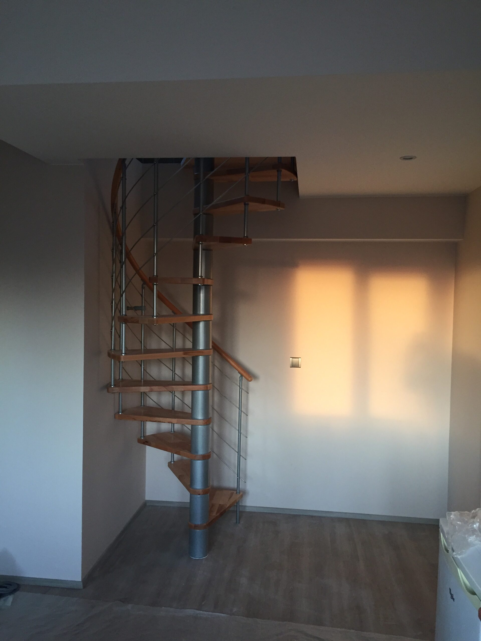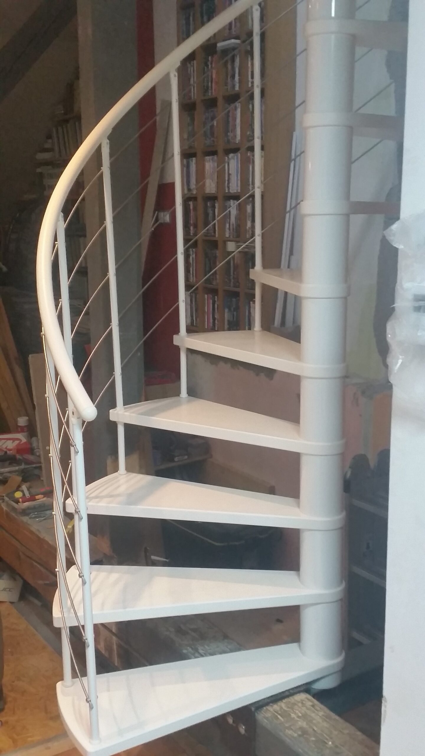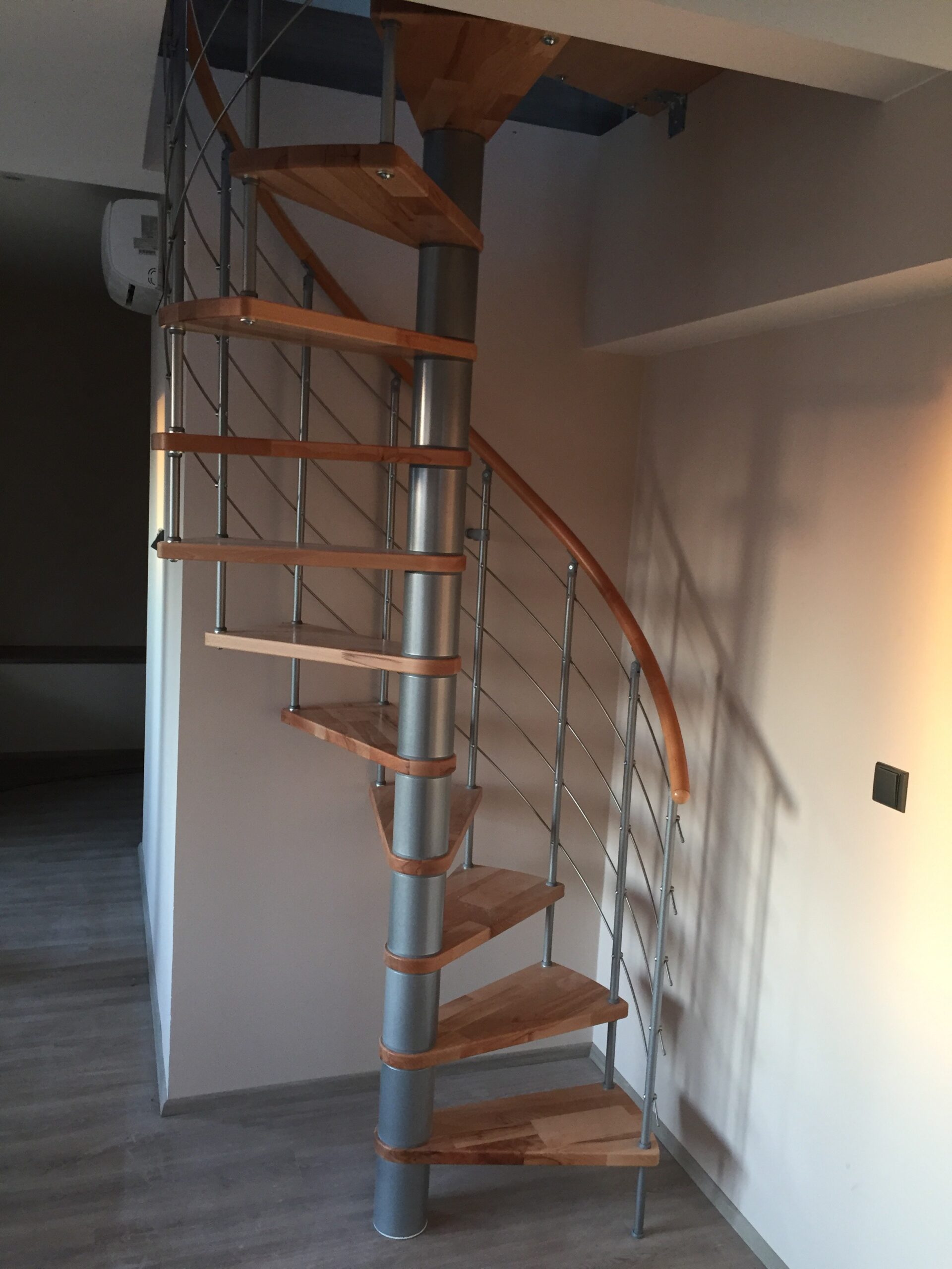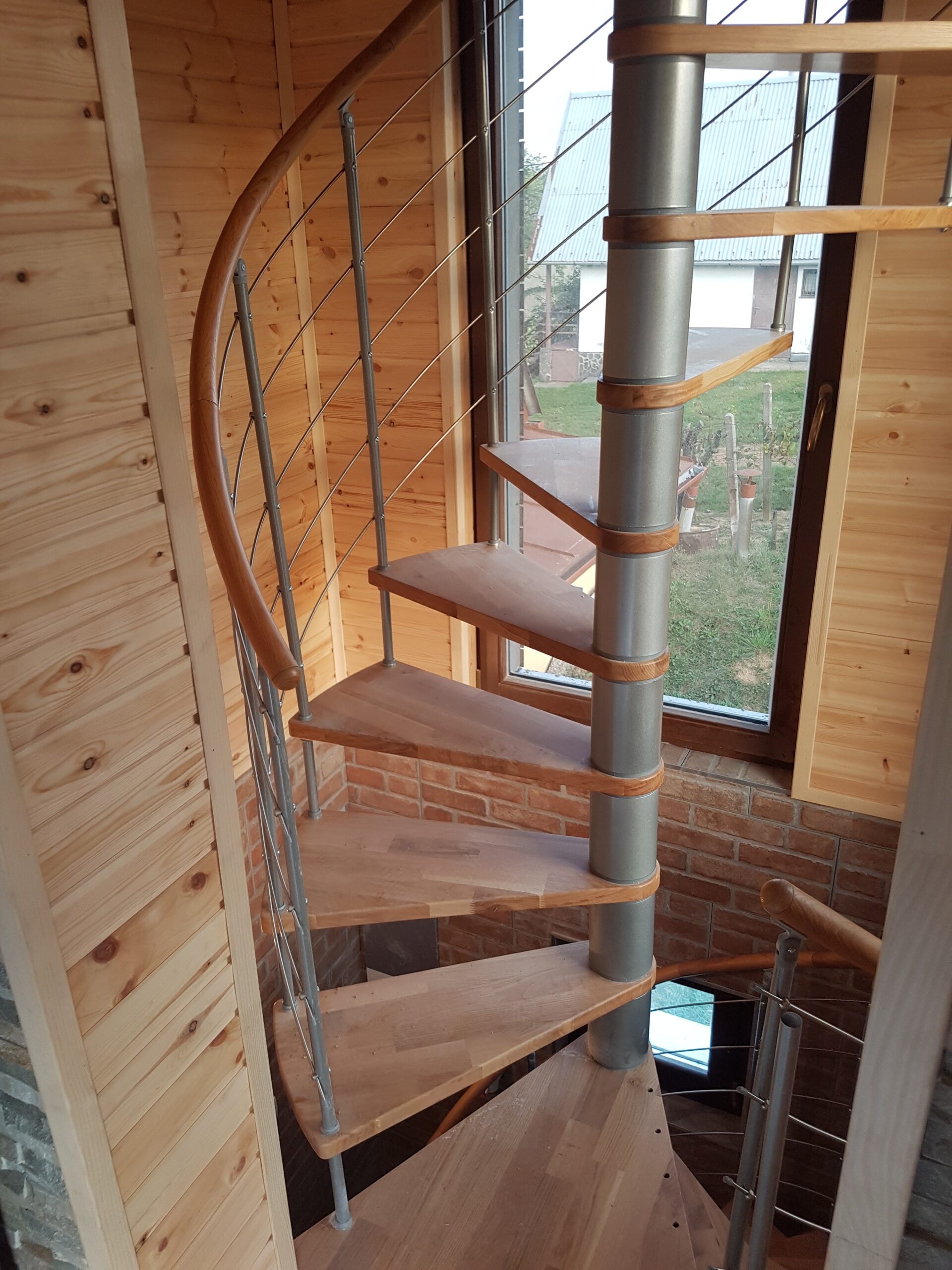 Die Spindeltreppe Spiral Smart ist in vier verschiedenen Größen erhältlich. Der Durchmesser kann 100, 120, 140 oder 160 cm betragen. Aber auch optisch bietet die Spiral Smart vielfältige Gestaltungsmöglichkeiten. Die Stufen bestehen entweder aus Eichenholz oder aus Buchenholz. Wahlweise gibt es die Buchenstufen außerdem auf eine dunklere Walnussoptik gebeizt oder in Weiß lackiert. Die Metallteile der Treppe sowie der Handlauf aus hochwertigem PVC können passend dazu entweder in Schwarz, Grau oder Weiß gewählt werden. Sie können sich Ihre Treppe also individuell zusammenstellen lassen, damit diese auf jeden Fall zu Ihrem Einrichtungsstil passt.