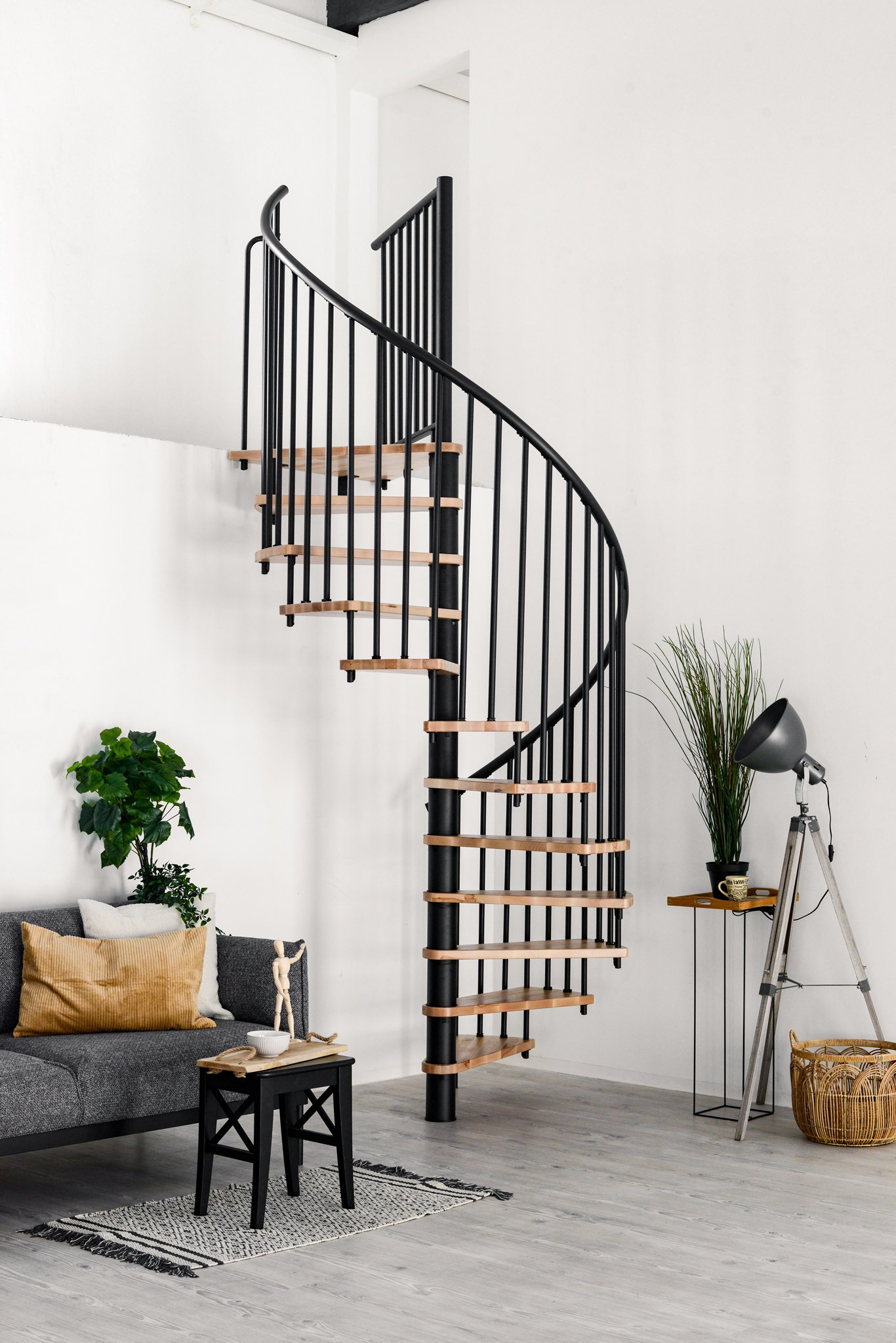 Die Spiral Smart ist eine vielseitig einsetzbare Spindeltreppe von Minka. Mit ihrer geradlinigen und eher schlichten Form ist sie ein wahrer Allrounder und fügt sich angenehm in jedes Raumbild ein. Besonders gut eignet sich die Spiral Smart für Familien mit Kindern und Haustieren – dank der stabilen Holzstufen und der eng beieinanderstehenden Geländerstäbe ermöglicht sie einen sicheren Auf- und Abstieg für die ganze Familie.