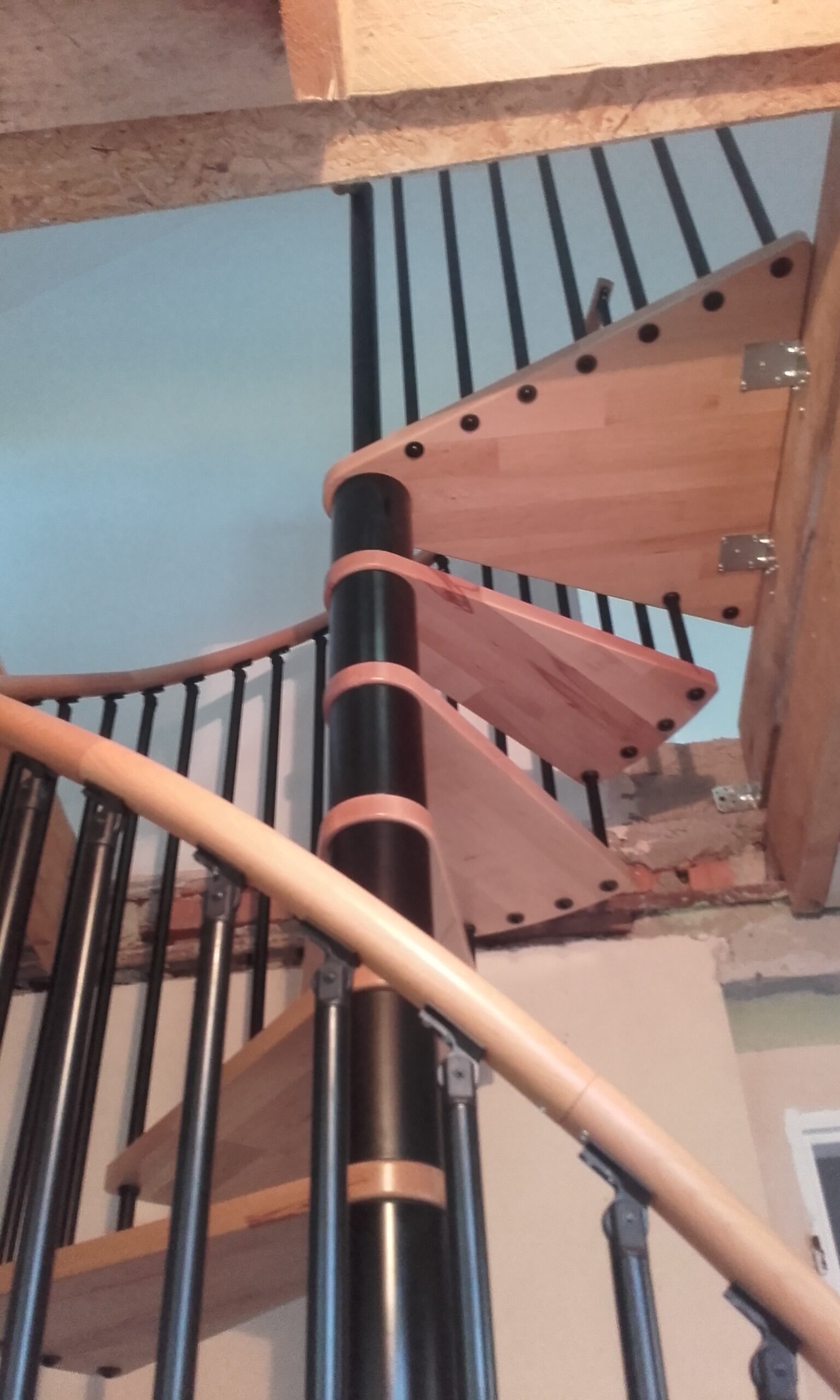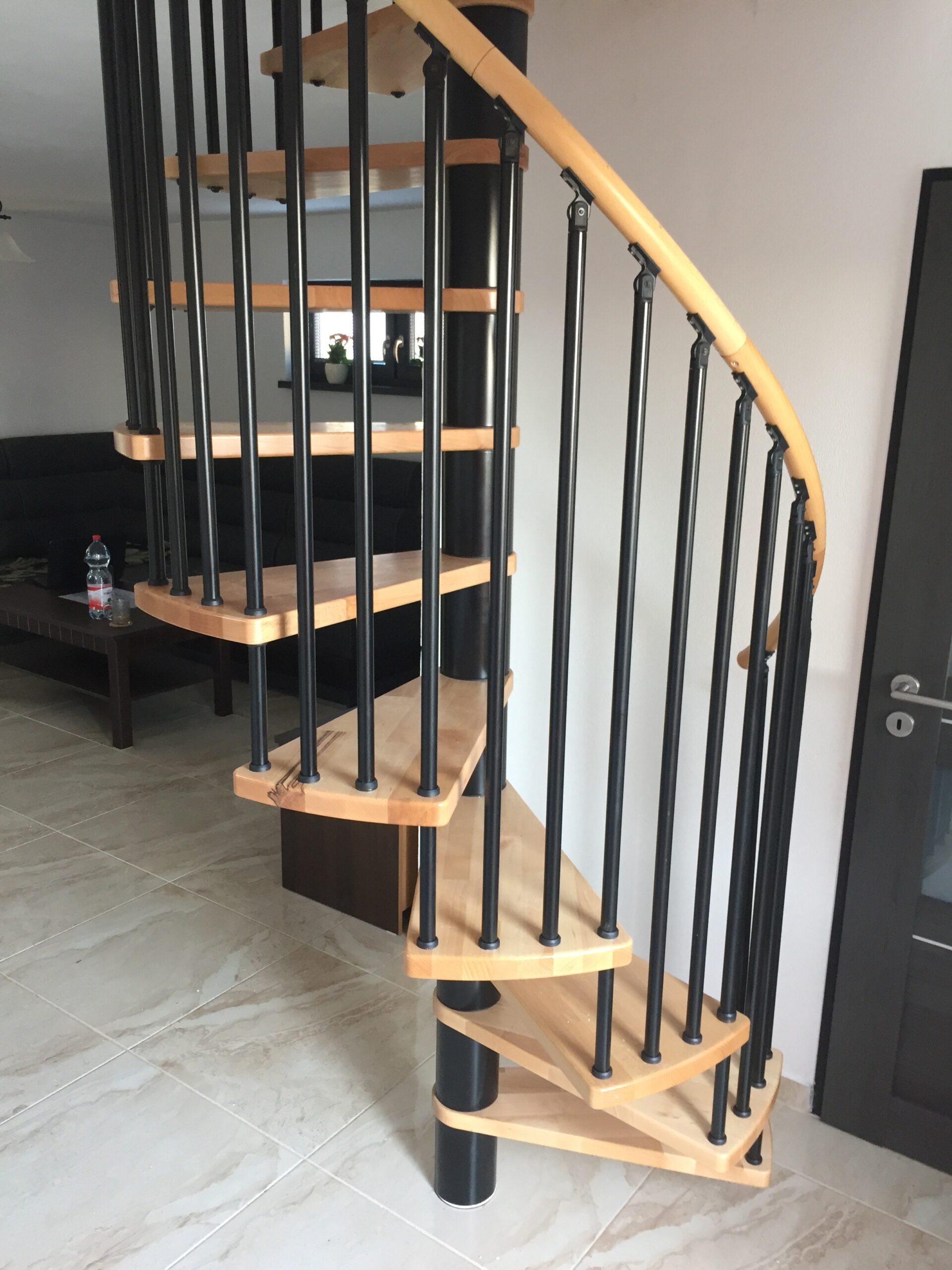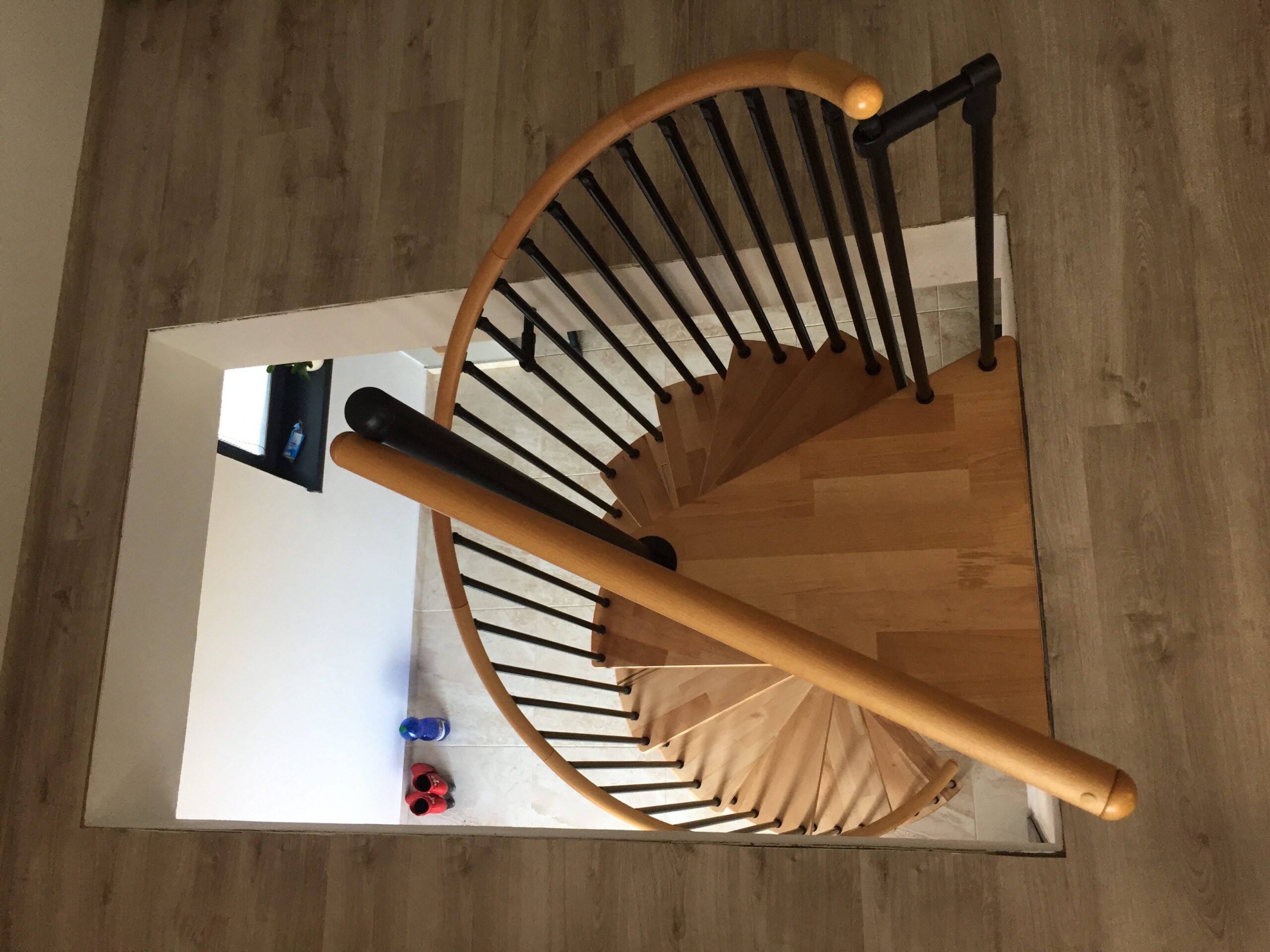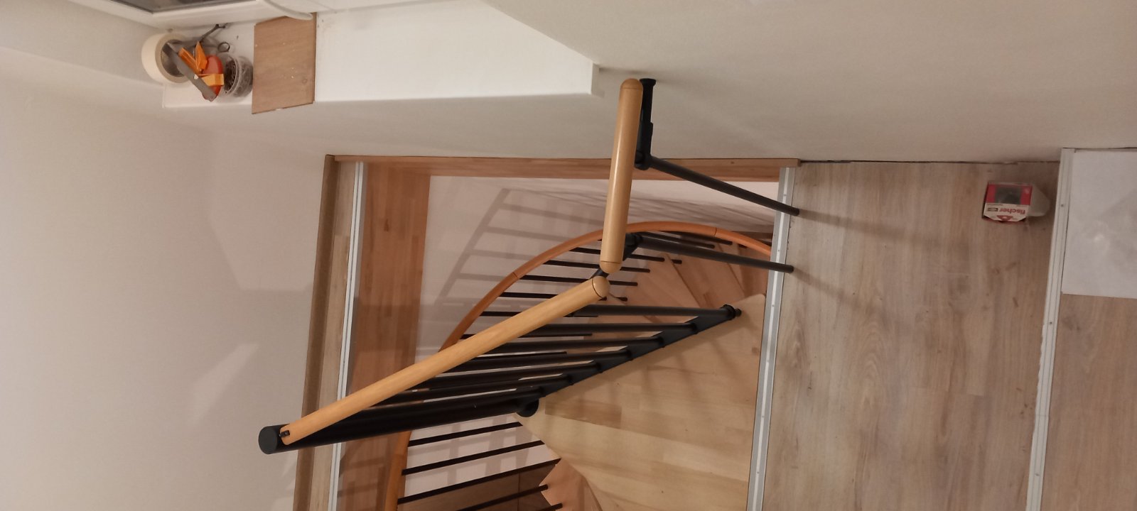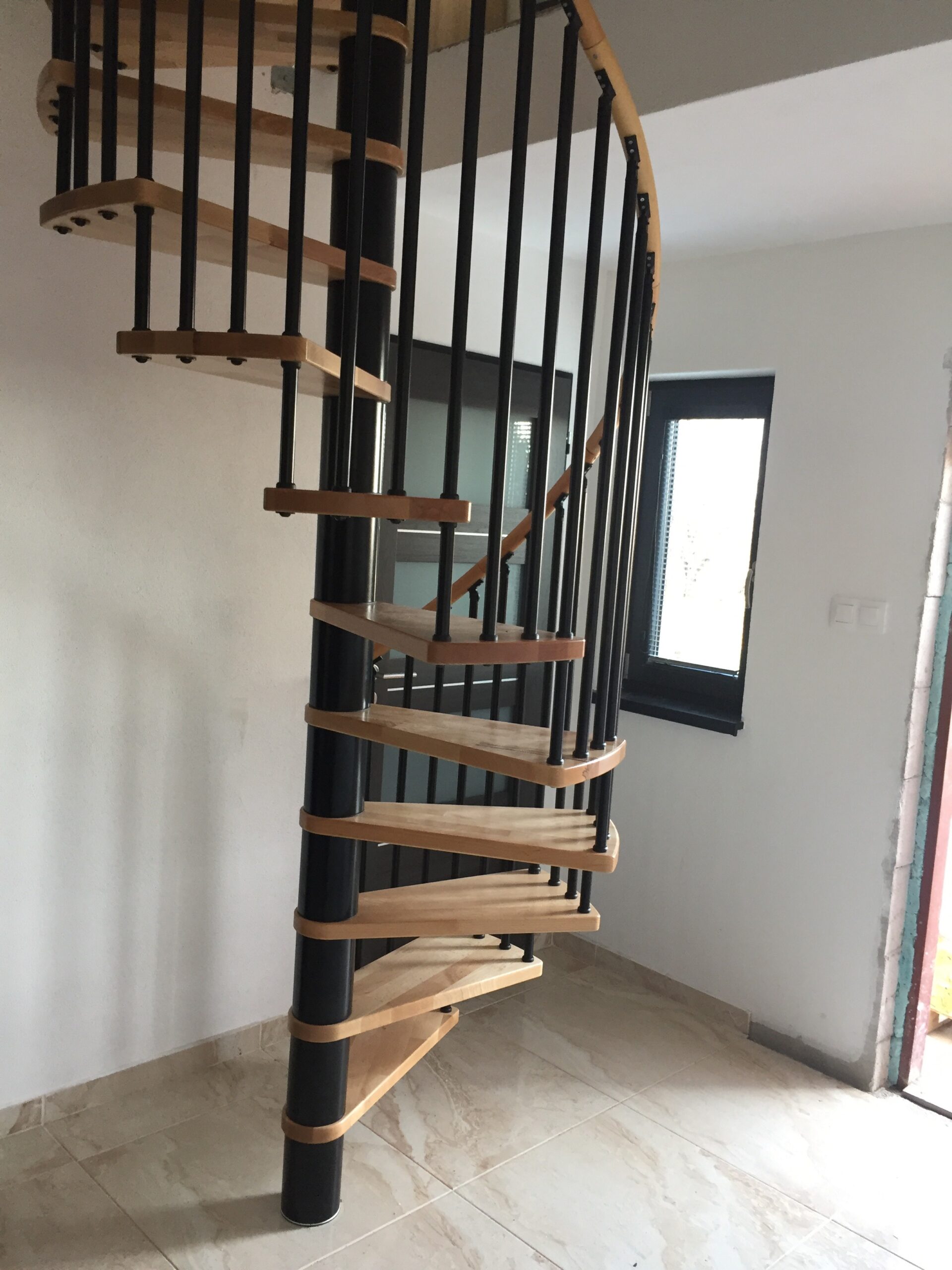 - Stabile Spindeltreppe mit Stufen und Handlauf aus lackiertem Massivholz