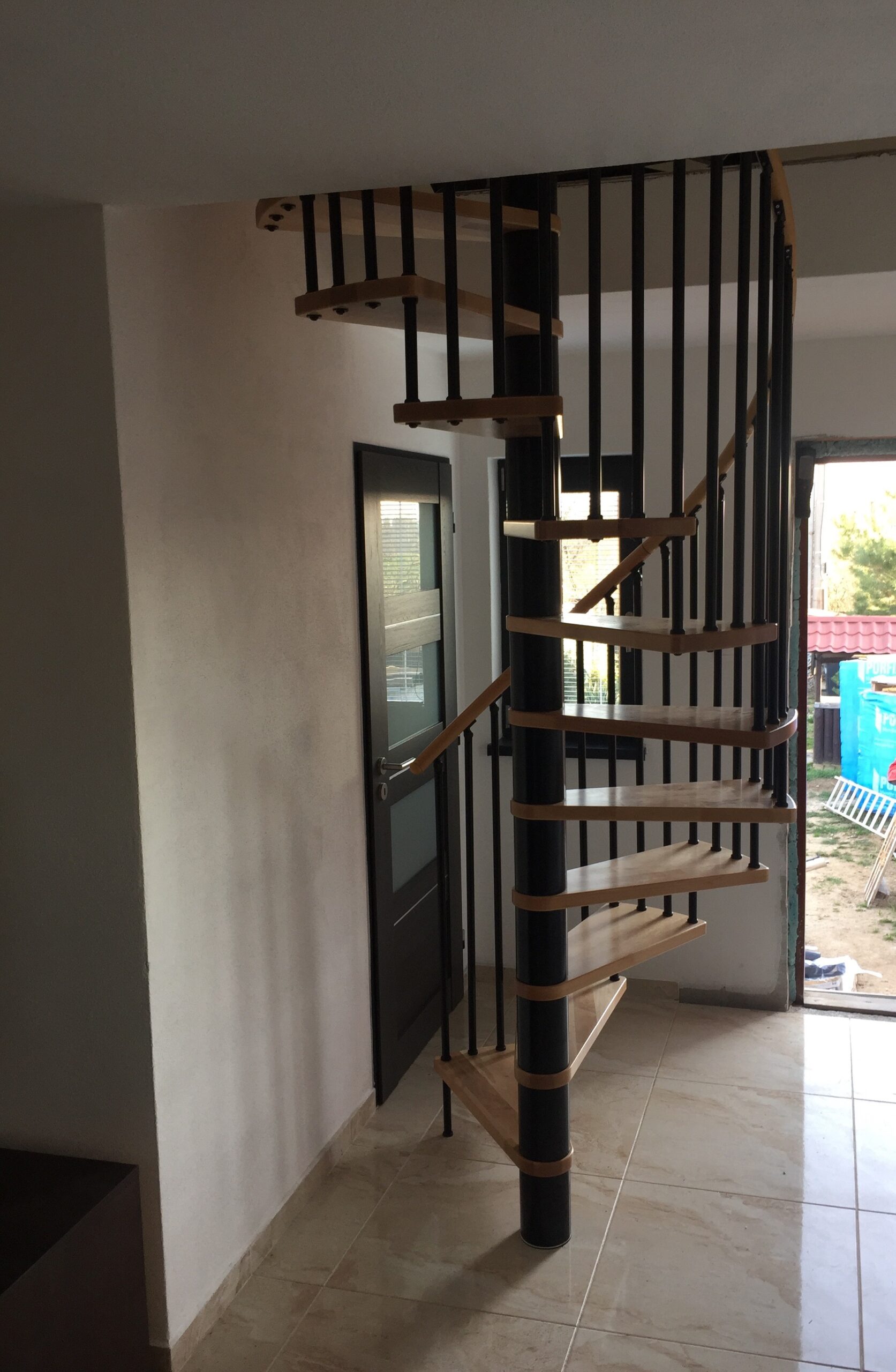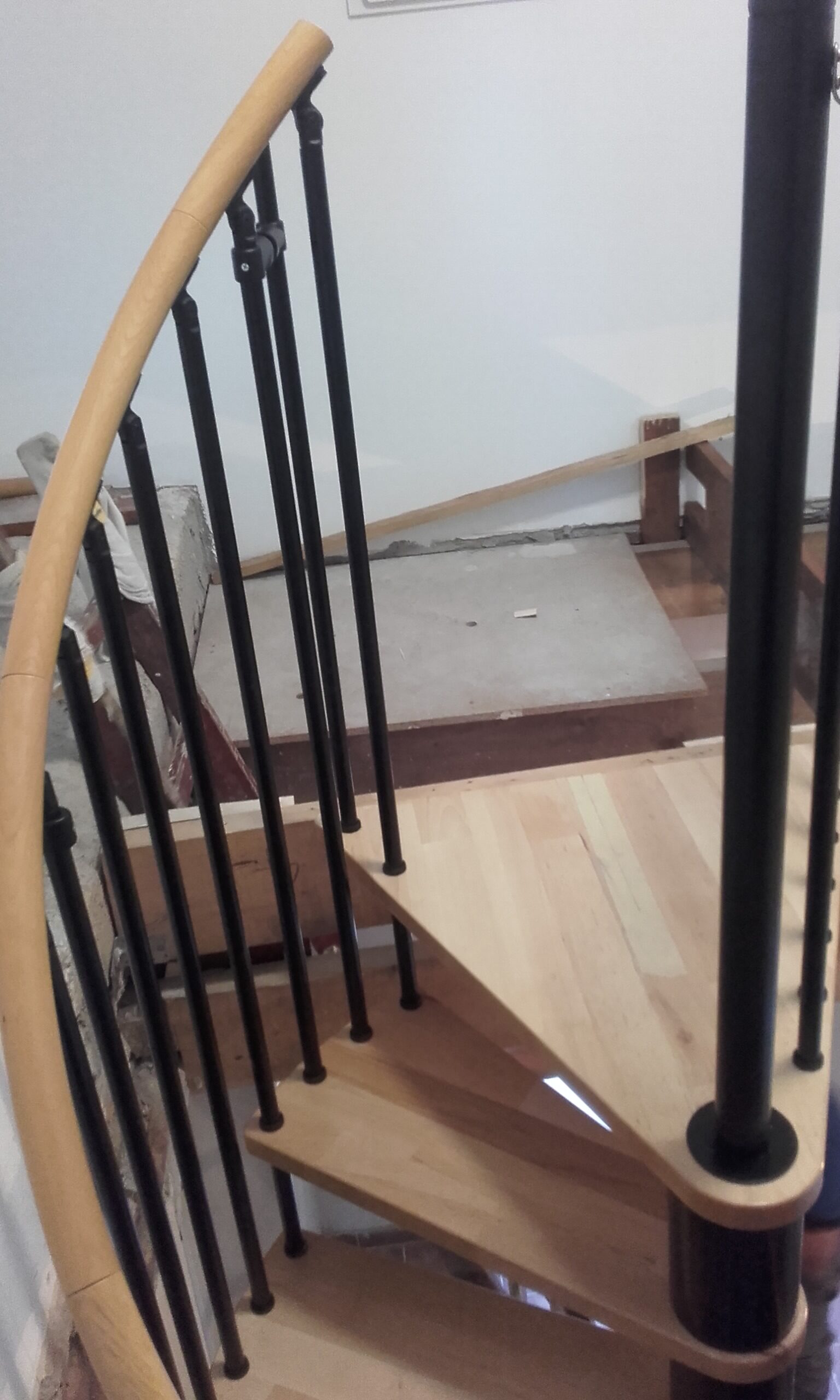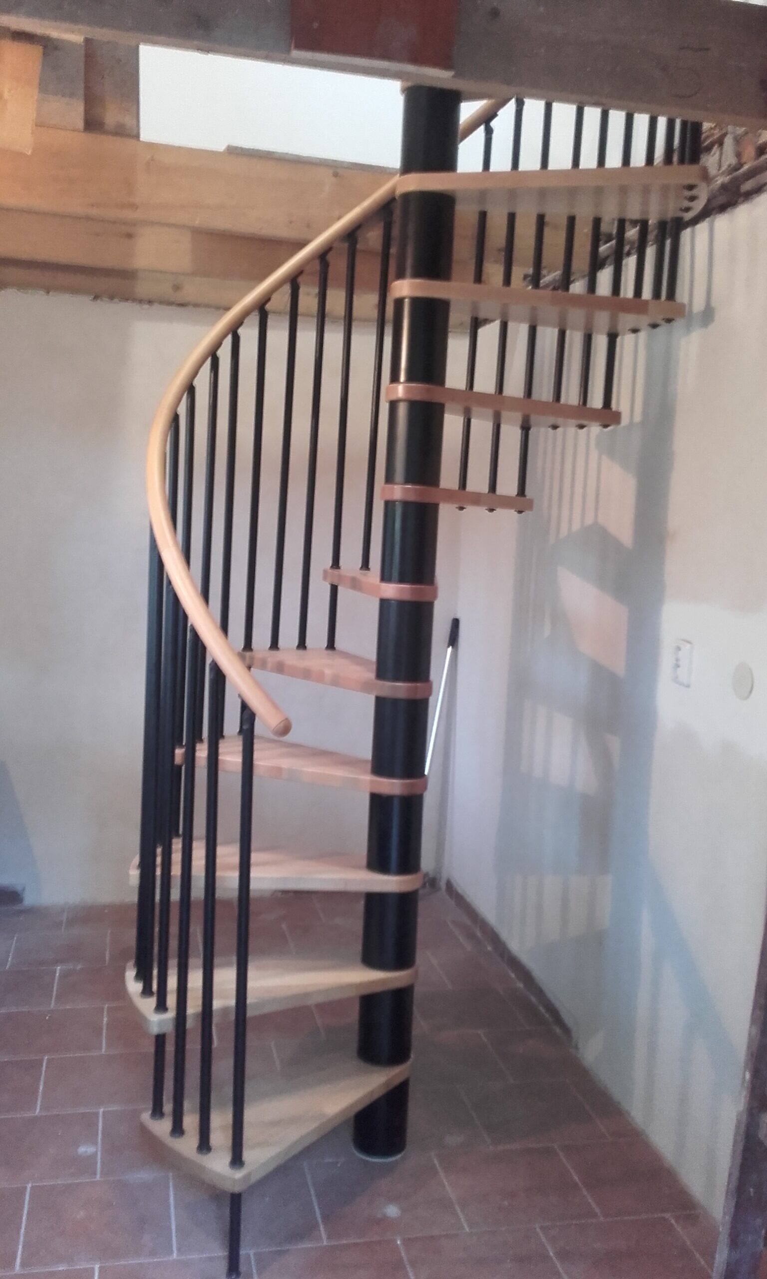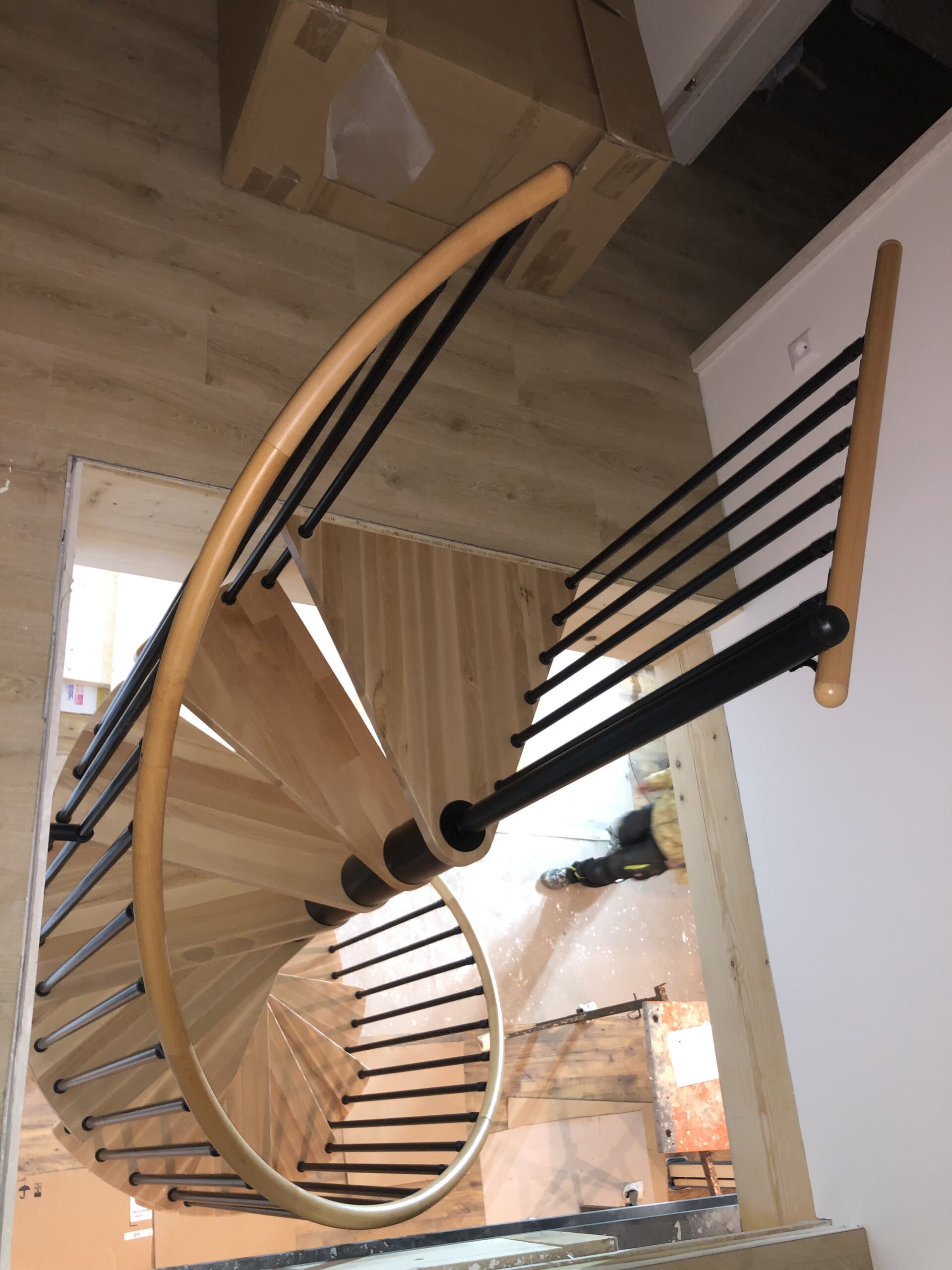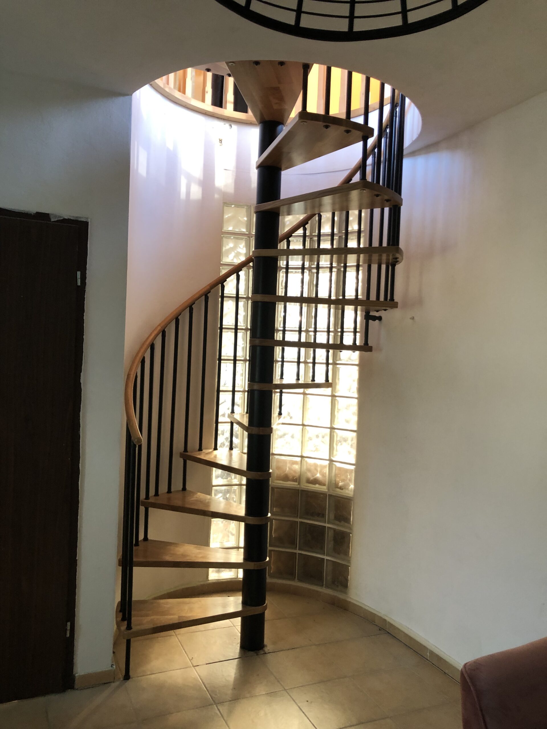 - Stabile Spindeltreppe mit Stufen und Handlauf aus lackiertem Massivholz