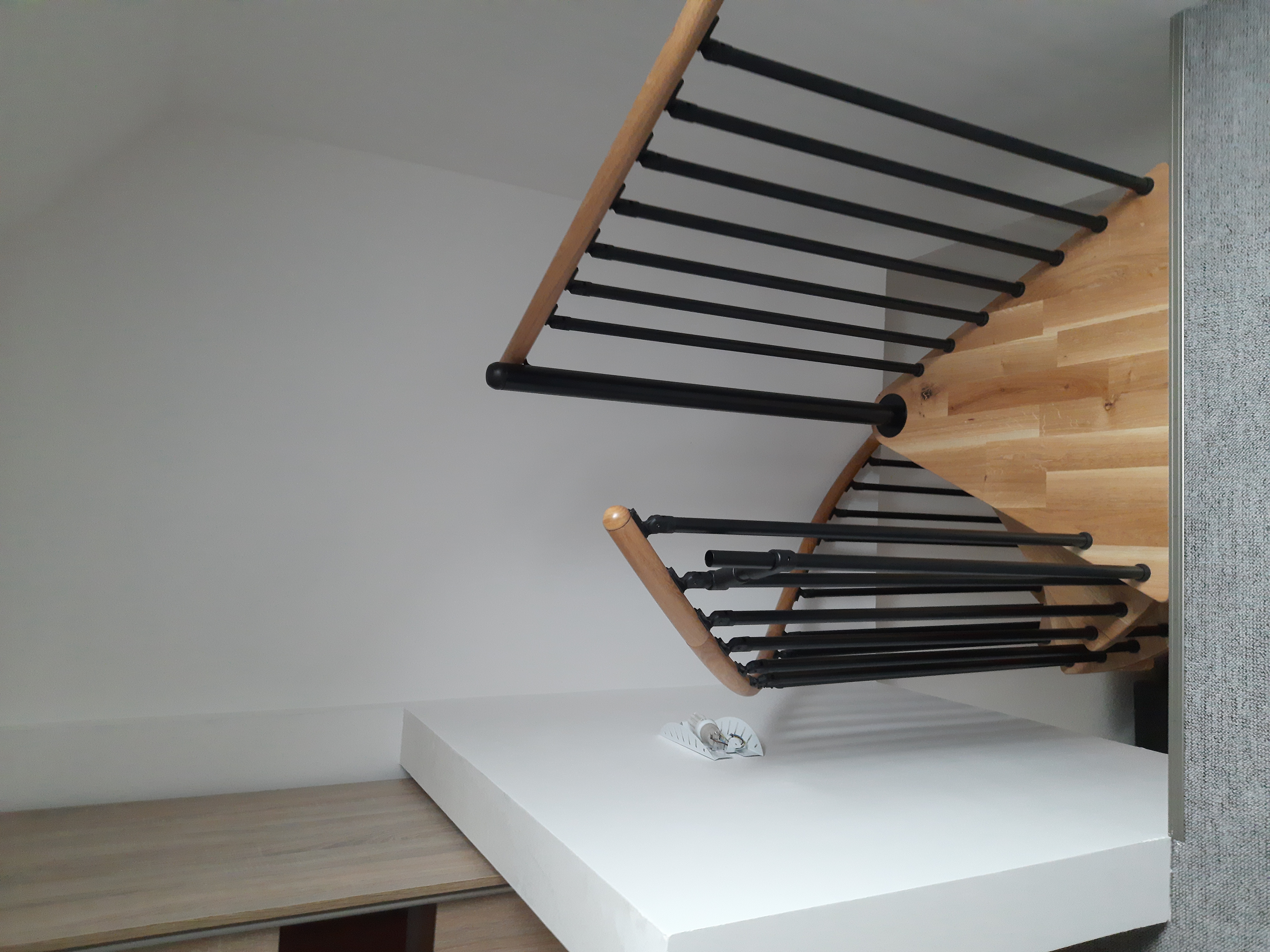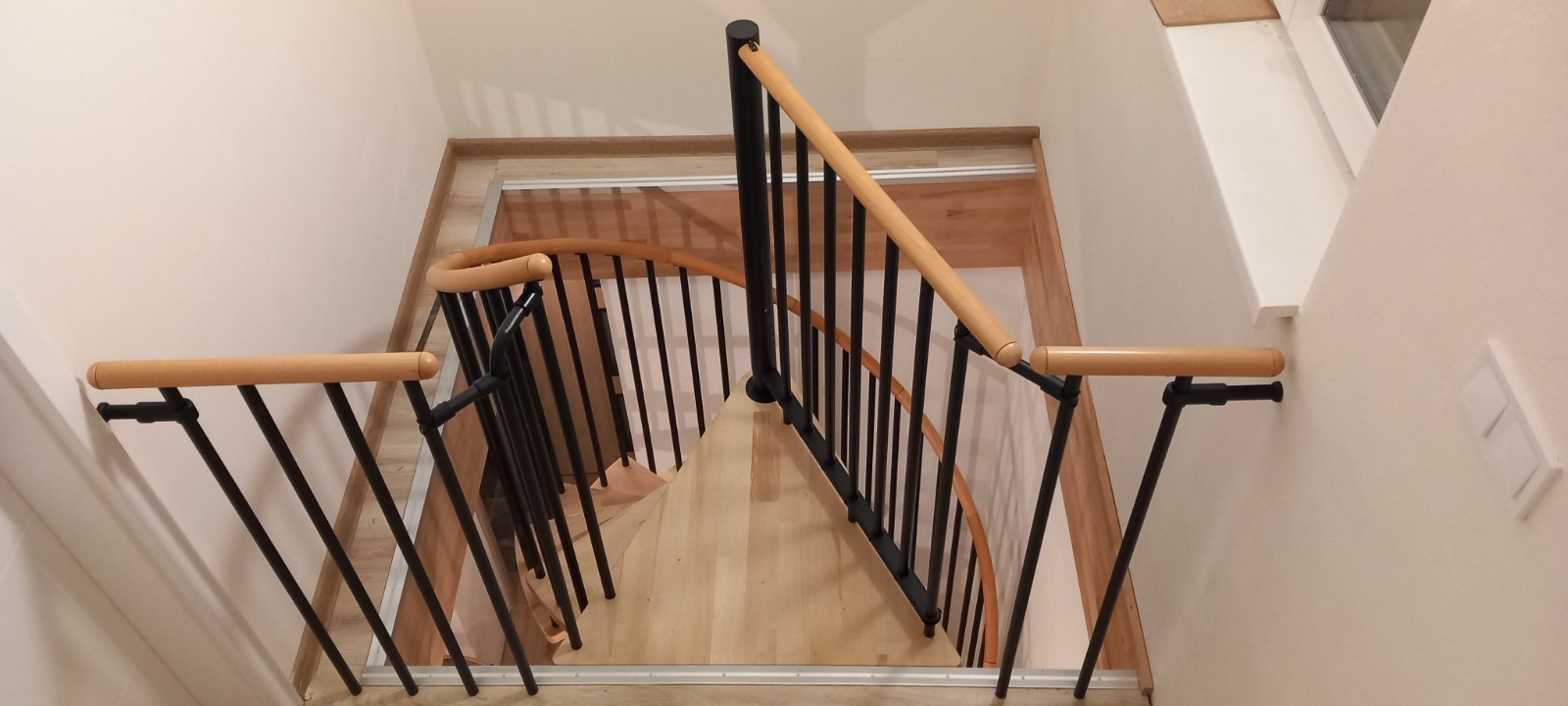 Ein Stahlgerüst kombiniert mit 35 mm starken Stufen und einem Handlauf aus echtem Massivholz – der Spindeltreppe Spiral Wood macht in puncto Stabilität so schnell keiner etwas nach. Das Stabgeländer sorgt für zusätzliche Sicherheit beim Treppensteigen. Somit ist die Spiral Wood auch die ideale Wahl für Familien.