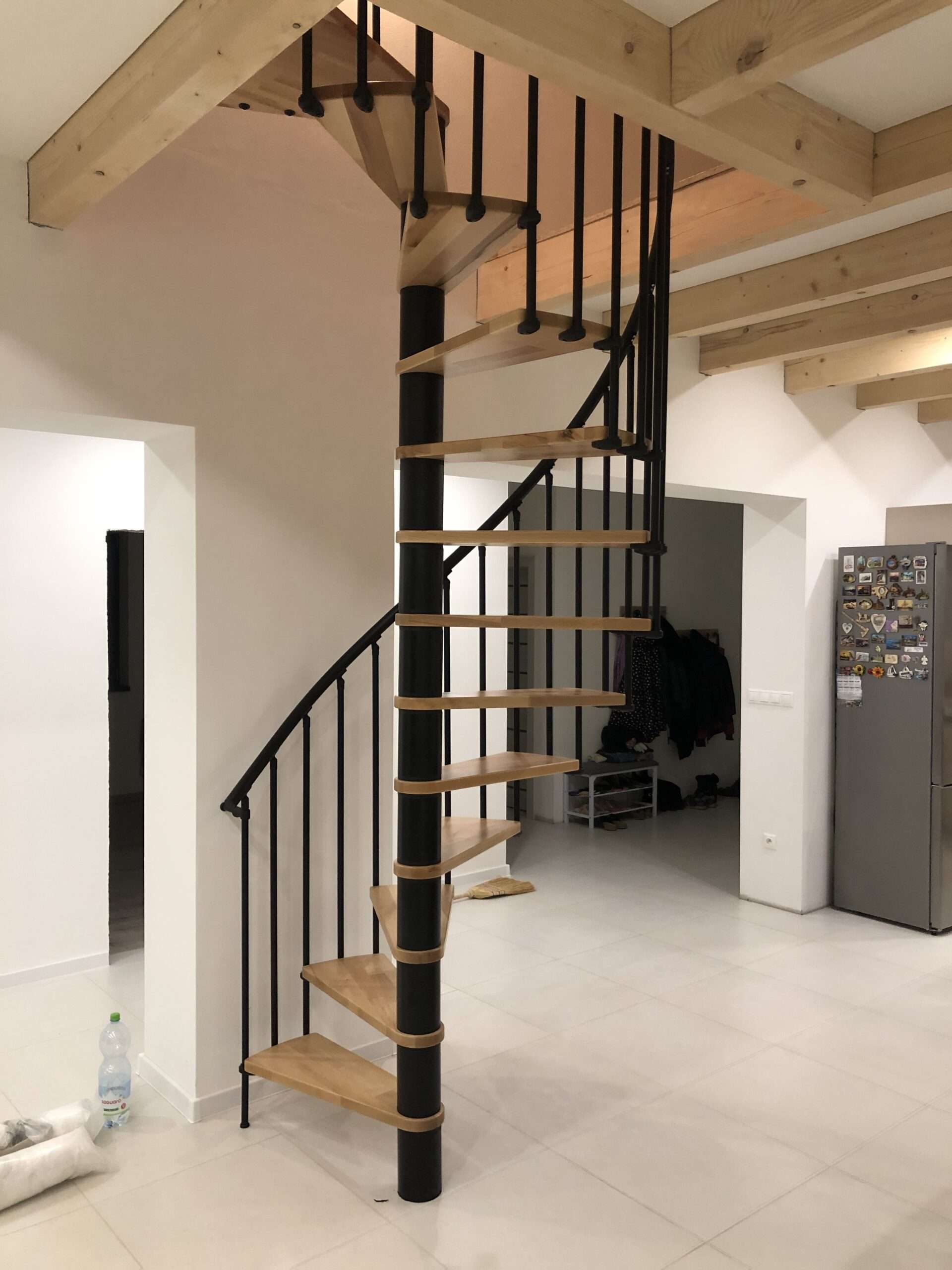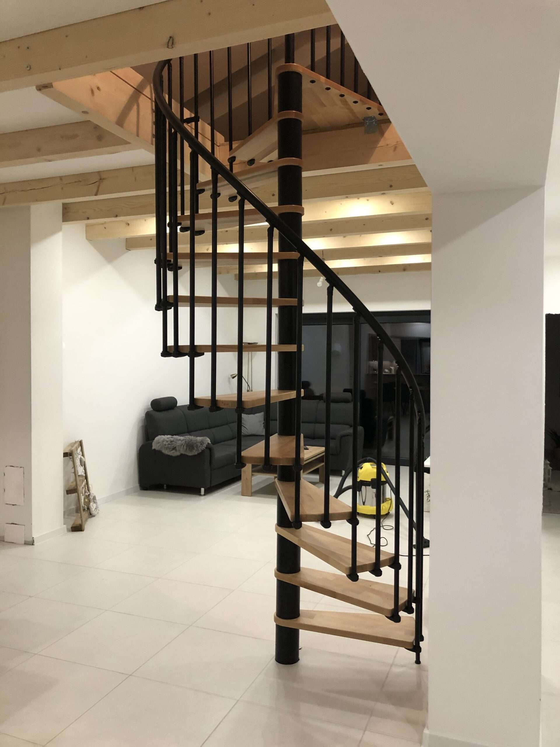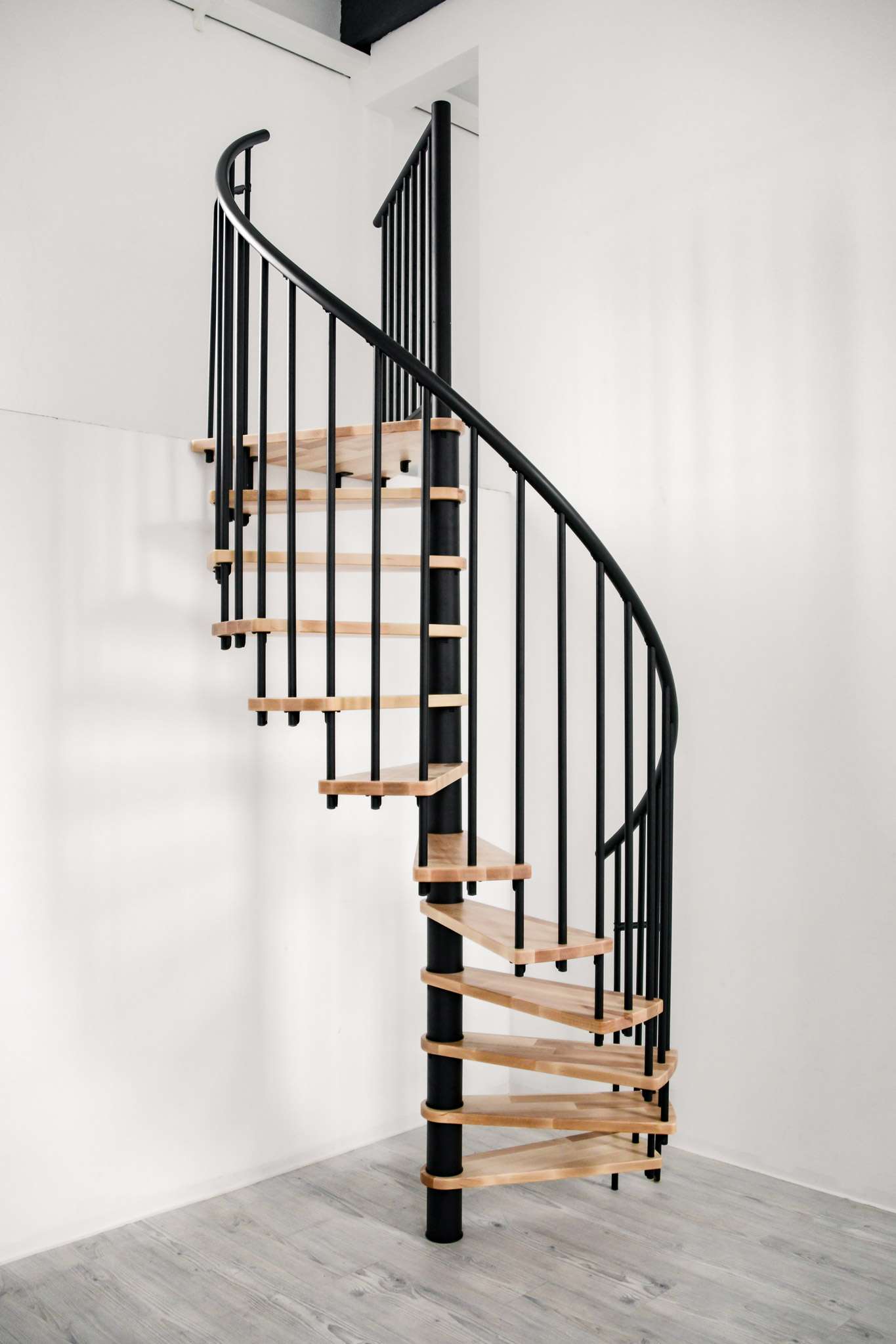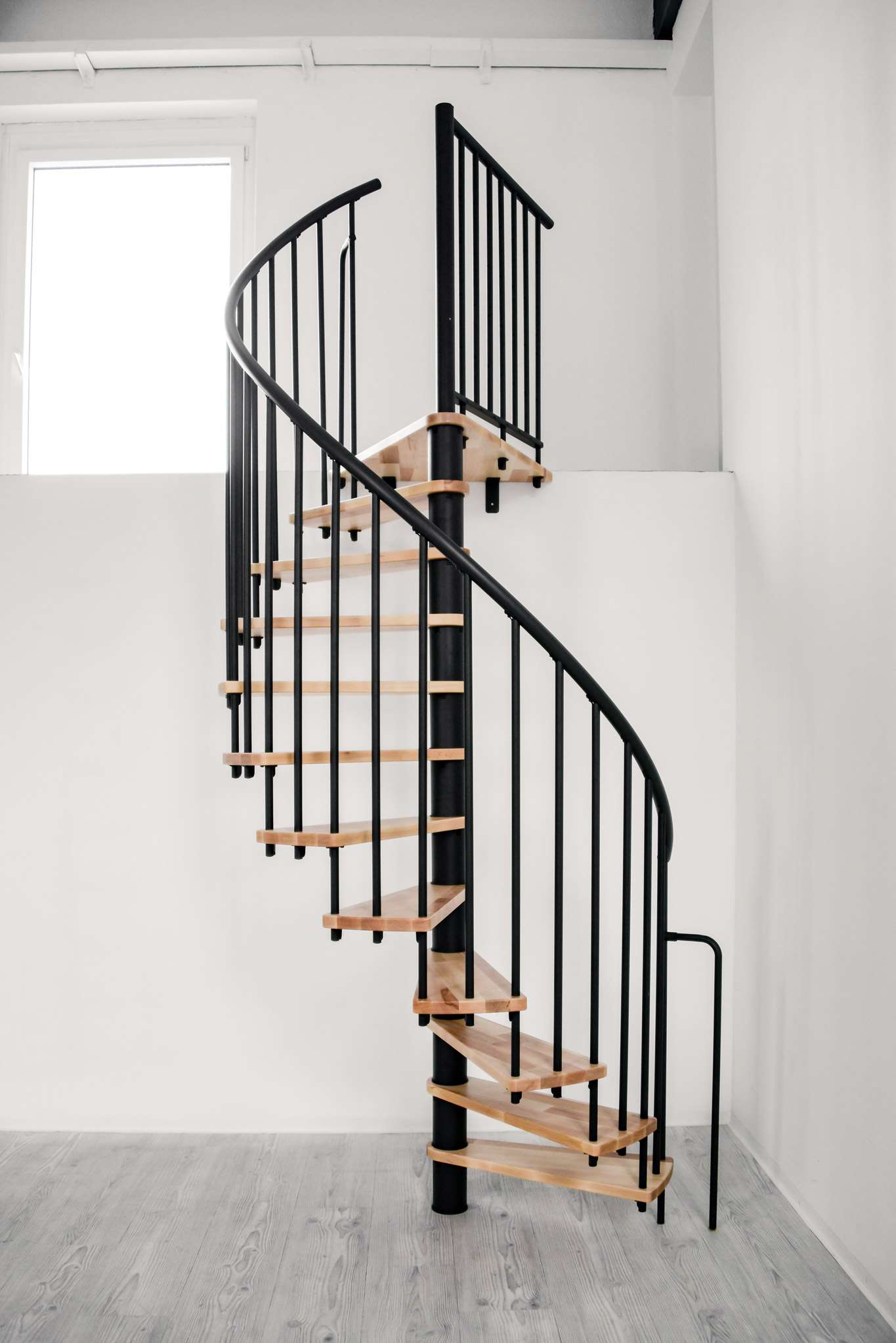 Schody Berlína sú vyrobené z lakovaného bukového dreva, kovové časti sú vyrobené z ocele s práškovým nástrekom a zábradlie je vyrobené z kvalitného PVC. Vreteno a zábradlie je možné dodať v čiernej, šedej alebo bielej farbe, v závislosti od vašich preferencií. Čo sa týka veľkosti, môžete si tiež slobodne vybrať medzi priemerom 120 cm a 140 cm. Určite teda nájdete tú správnu kombináciu pre vašu individuálnu životnú situáciu.