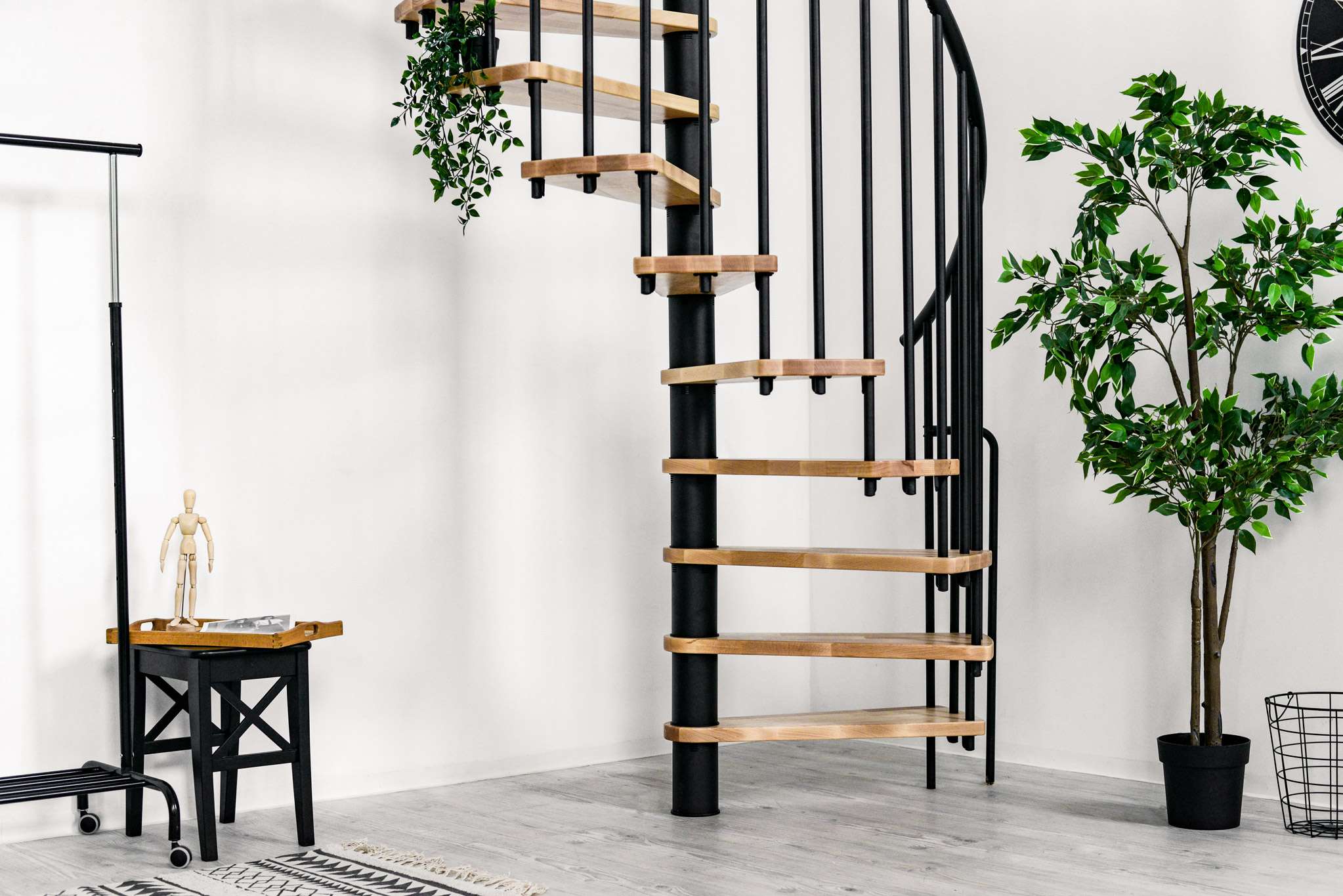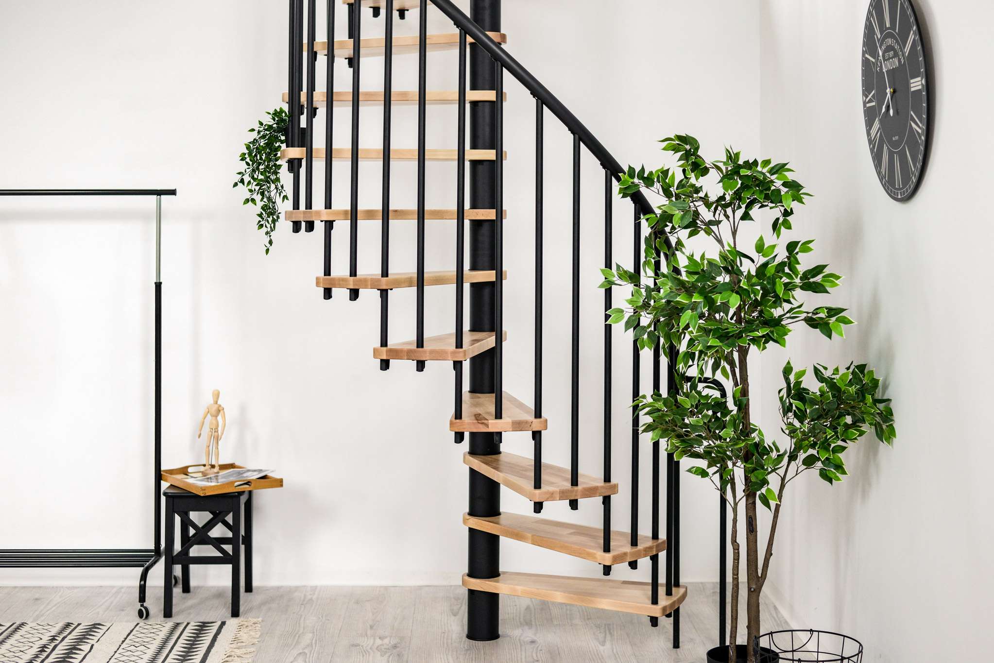 Berlínske točité schodisko od spoločnosti Minka presvedčí jednoduchým, ale zároveň elegantným dizajnom. Kombinácia rovných drevených schodov a rovných tyčí zábradlia má za následok harmonický celkový vzhľad, ktorý vizuálne vyšperkuje každú miestnosť. Berlínske točité schodisko však nie je len vizuálne pôsobivé – vďaka stabilnému základnému rámu a zábradliu je vždy zaručené bezpečné používanie.
